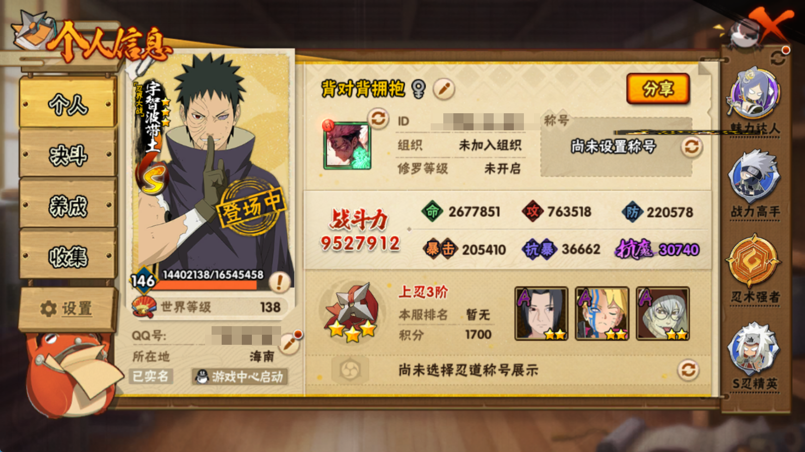 (可转苹果)952W战力 白破 红夜带土16S+漂泊小南 泳装鼬2个198直购34A+一堆S碎片