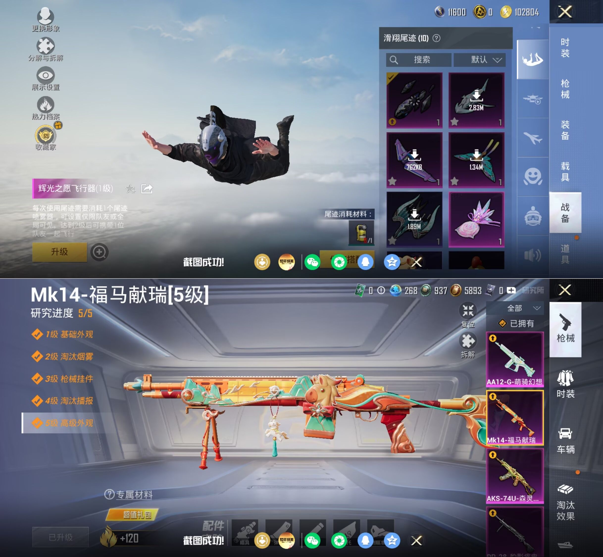 5粉装 10特 梦幻火箭 浪漫天命 暗夜之虎 幻影战神 满级五爪