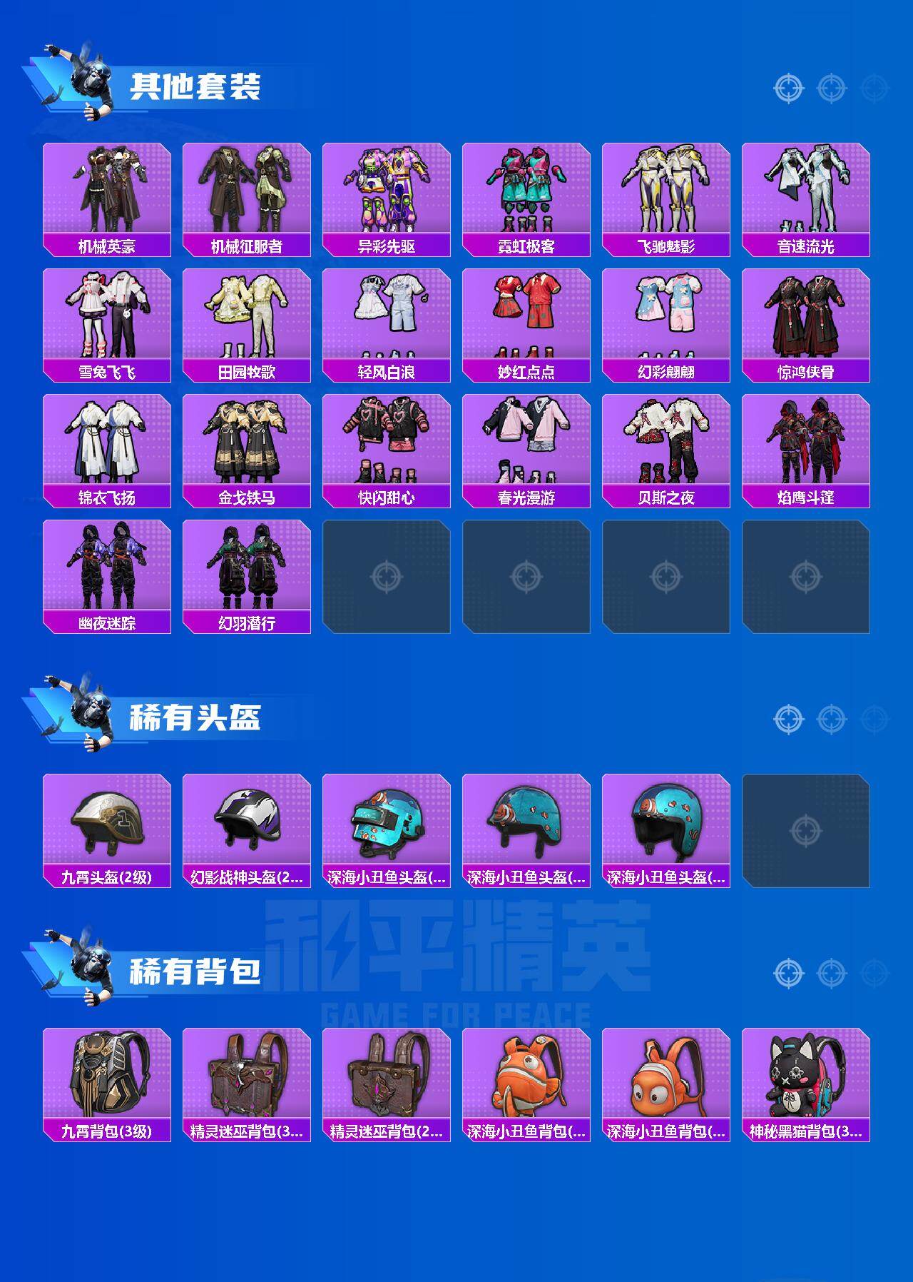 【粉色套装】:粉装-极限特训,粉装-古堡领主,粉装-星之彼岸,角色-辉云木星