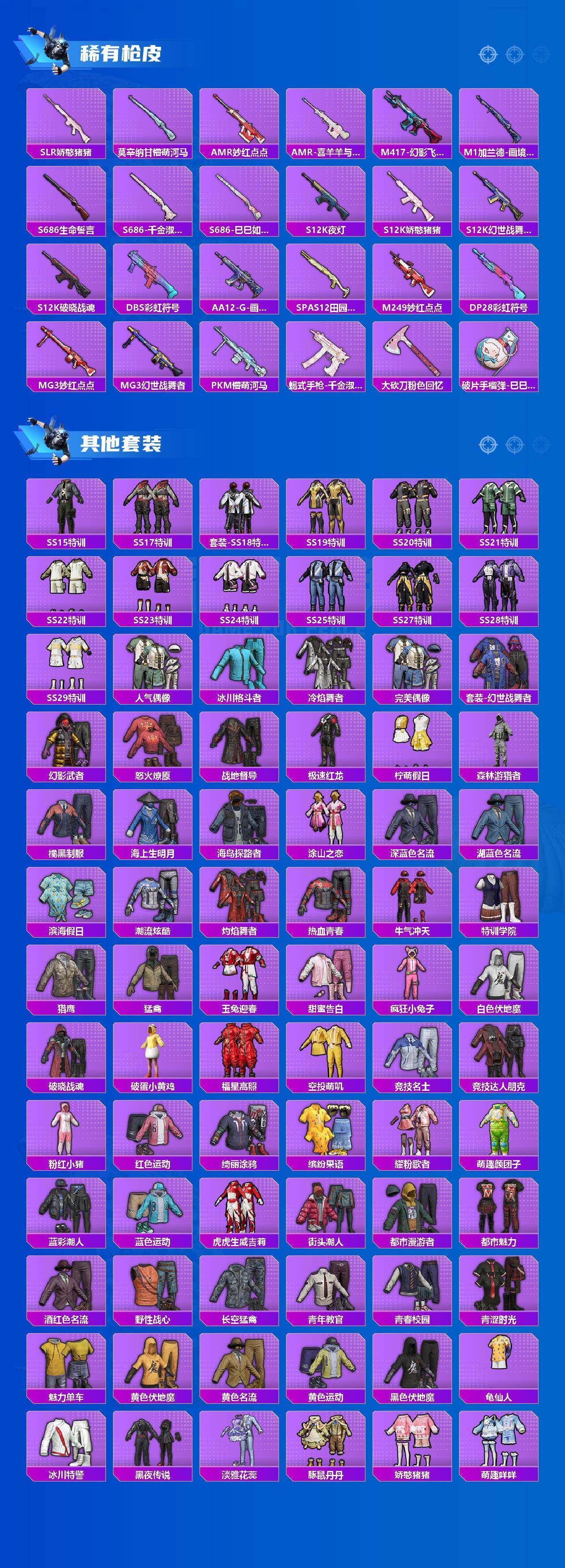 【粉色枪皮等级】:GROZA-镜光银凌(五级),AUG-暖羊咩咩(五级),M762-鬼刀(五级),Kar98K-巳巳如意(五级),DP-28-豹影疾电(四级)