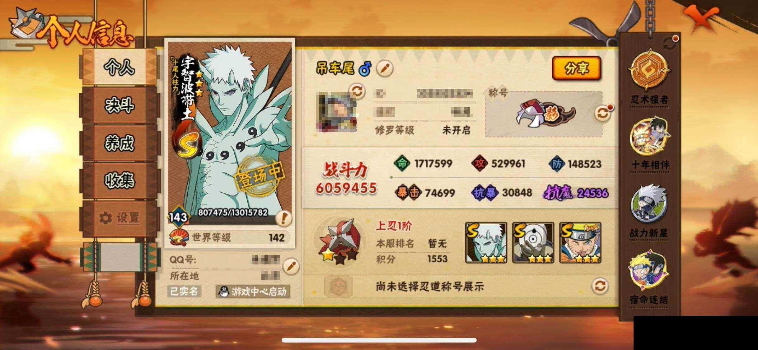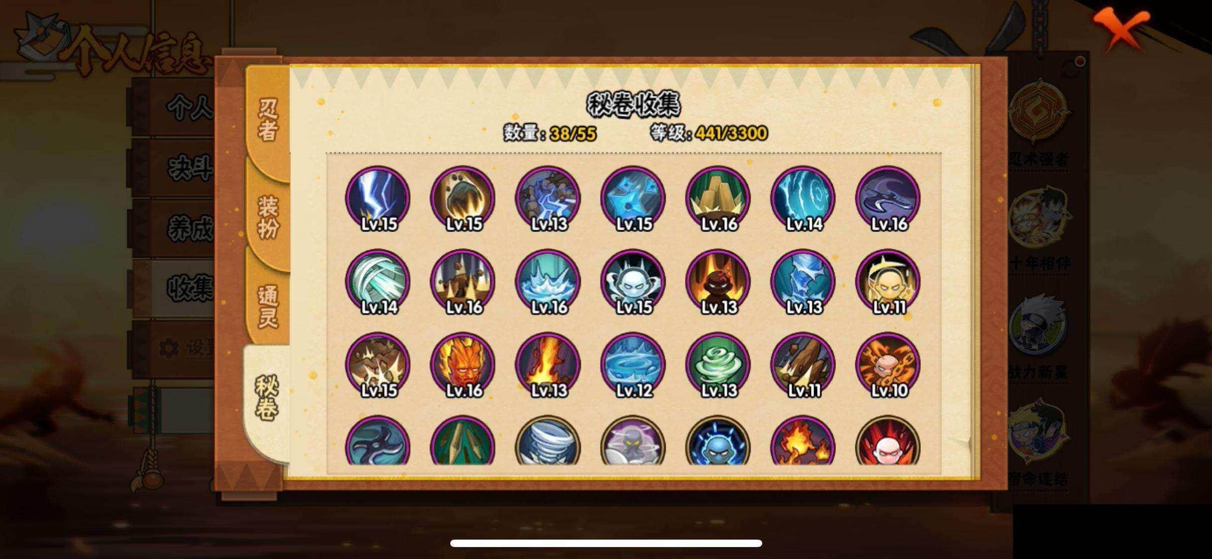 VIP等级V7/战力600W/S忍数量11/A忍数量25/秽土