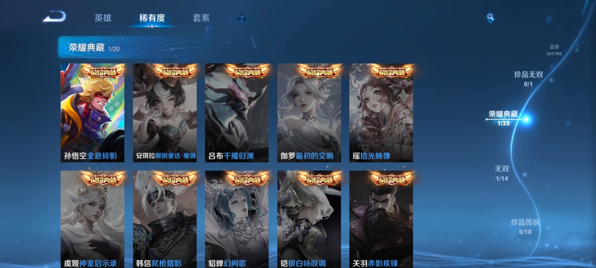 [17908289]实名: 可修改 性别: 男号 贵族等级: V8 英雄数: 127 皮肤数: 287 荣耀水晶: 全息碎影 无双皮: 青丘·九尾 传说皮: 冠军飞将,猫影幻舞,一念神魔,云霓雀翎,仲夏夜之梦,零号·赤焰,李逍遥,时之恋人-刘备,音你闪耀,浮生妄,青丘·九尾,神树通天 限定皮: 李小龙,御风骁将,引擎之心,烈魂,岱宗,飞衡,逐梦之影,神奇女侠,美猴王,青龙志,瑞麟志,玄武志,朱雀志,至尊宝,武陵仙君,高山流水,孙行者,百木心枪,五谷丰年,诗剑行,降魔,山海·玄木吟,齐天大圣,鸣野