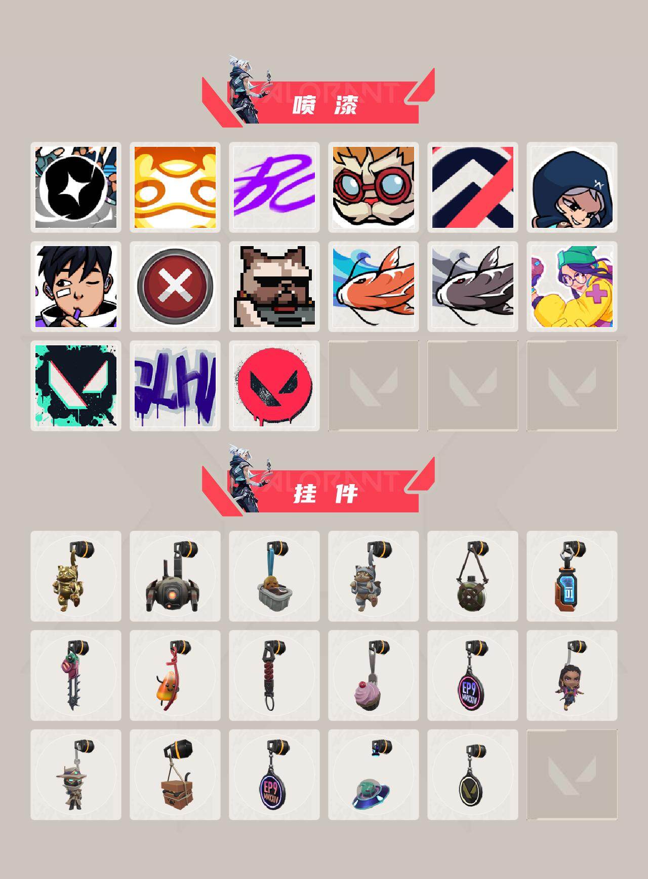 【英雄】:幻棱,炼狱,维斯,暮蝶,钛狐,壹决,铁臂,捷风,雷兹,幽影,不死鸟,贤者,猎枭,蝰蛇,零,芮娜,奇乐,尚勃勒,霓虹,斯凯,夜露,星礈,K/O,海神,盖可,黑梦,钢锁【近战武器】:近战武器-影钩,近战武器-剥皮小刀,近战武器-落英飞旋,近战武器-镭切,近战武器-鬼丸国纲,近战武器-盖亚之愠,近战武器-荒土机兵 热能刀,近战武器-诡秘蛇影 军刀,近战武器-神圣领域 战刀【狂徒】:狂徒-洪荒怒焰,狂徒-双城之战,狂徒-光荣异象,狂徒-般若假面//2.0,狂徒-日冕雄师,狂徒-耀鳞威龙,狂徒-