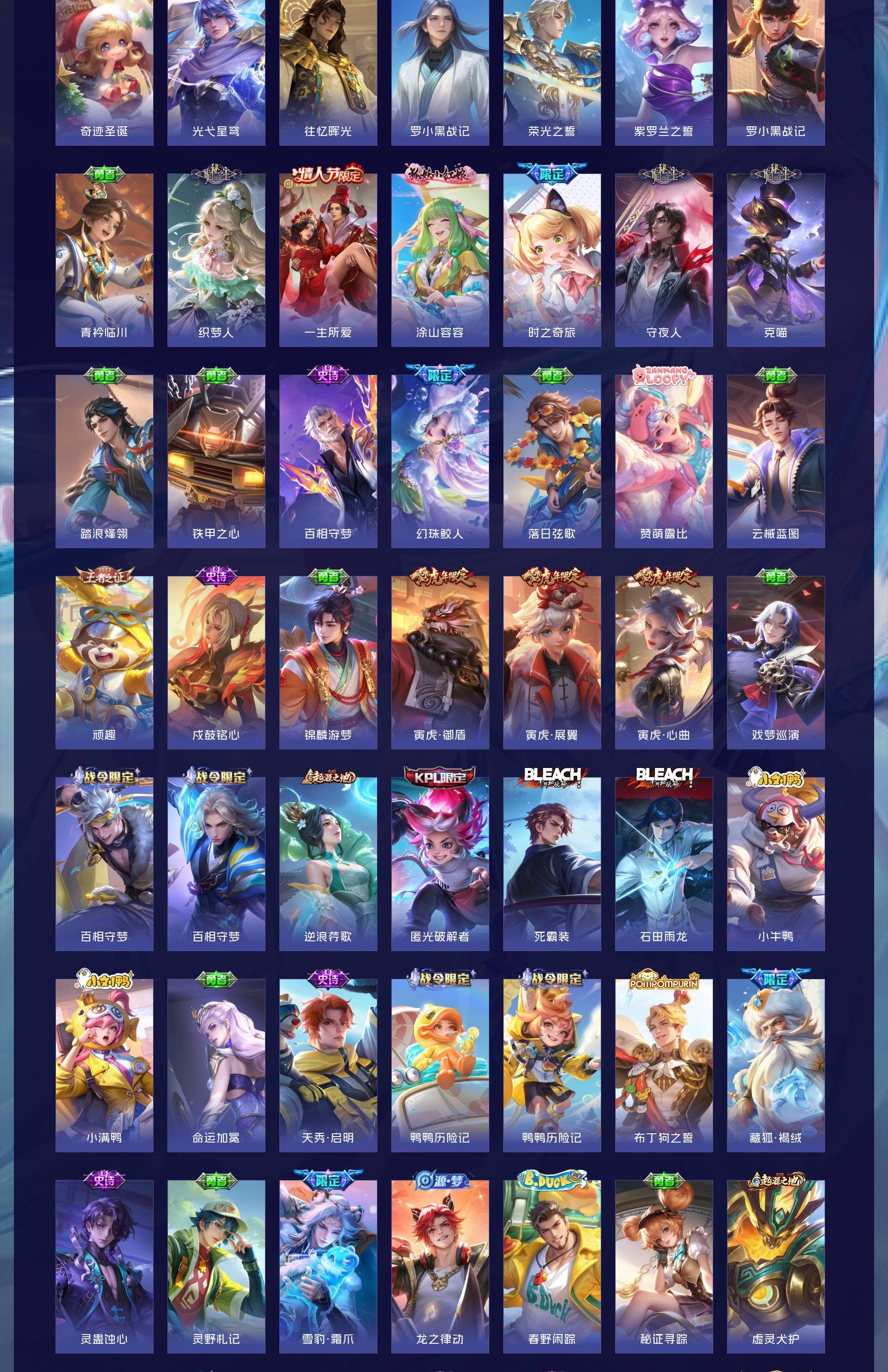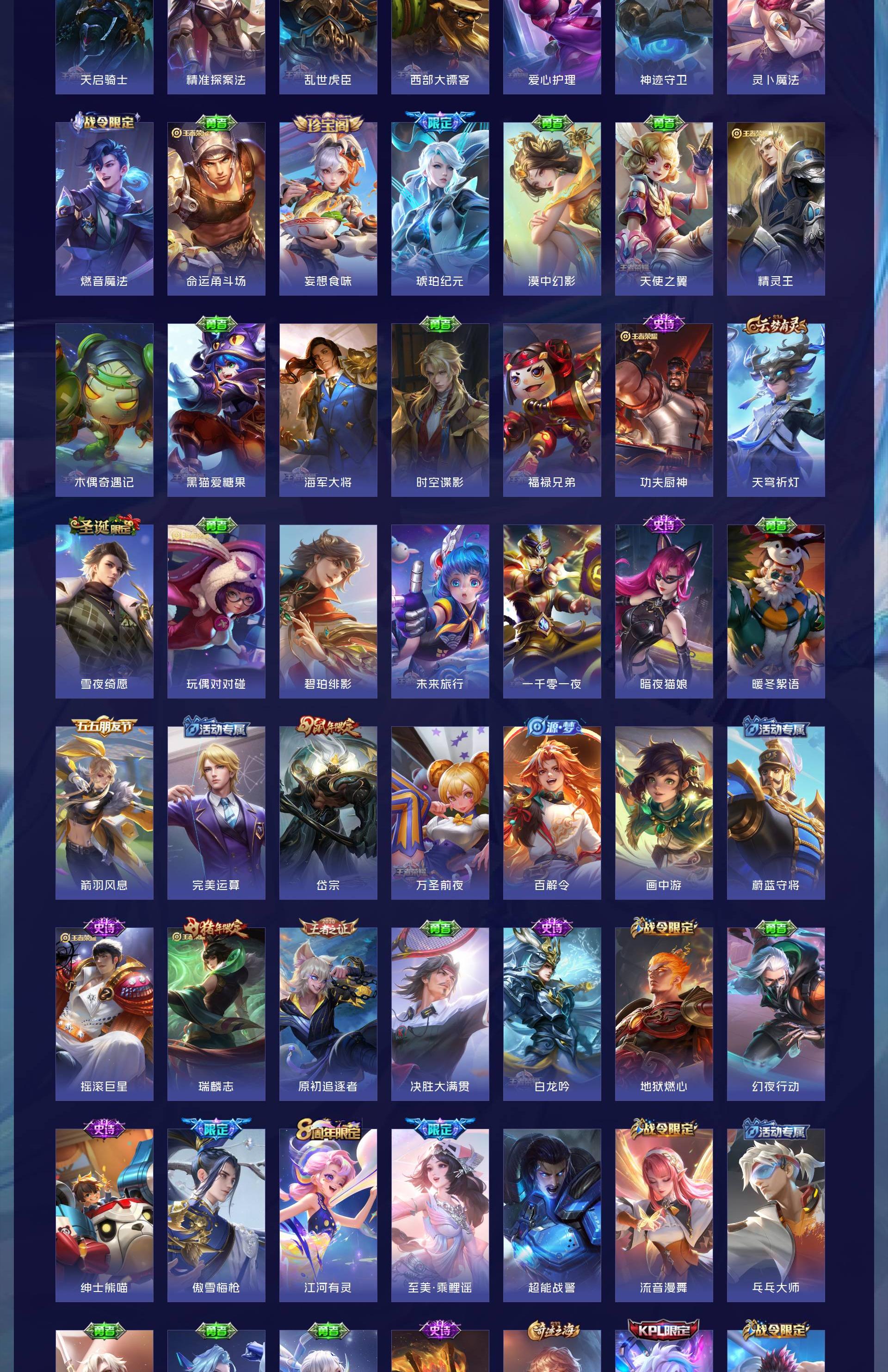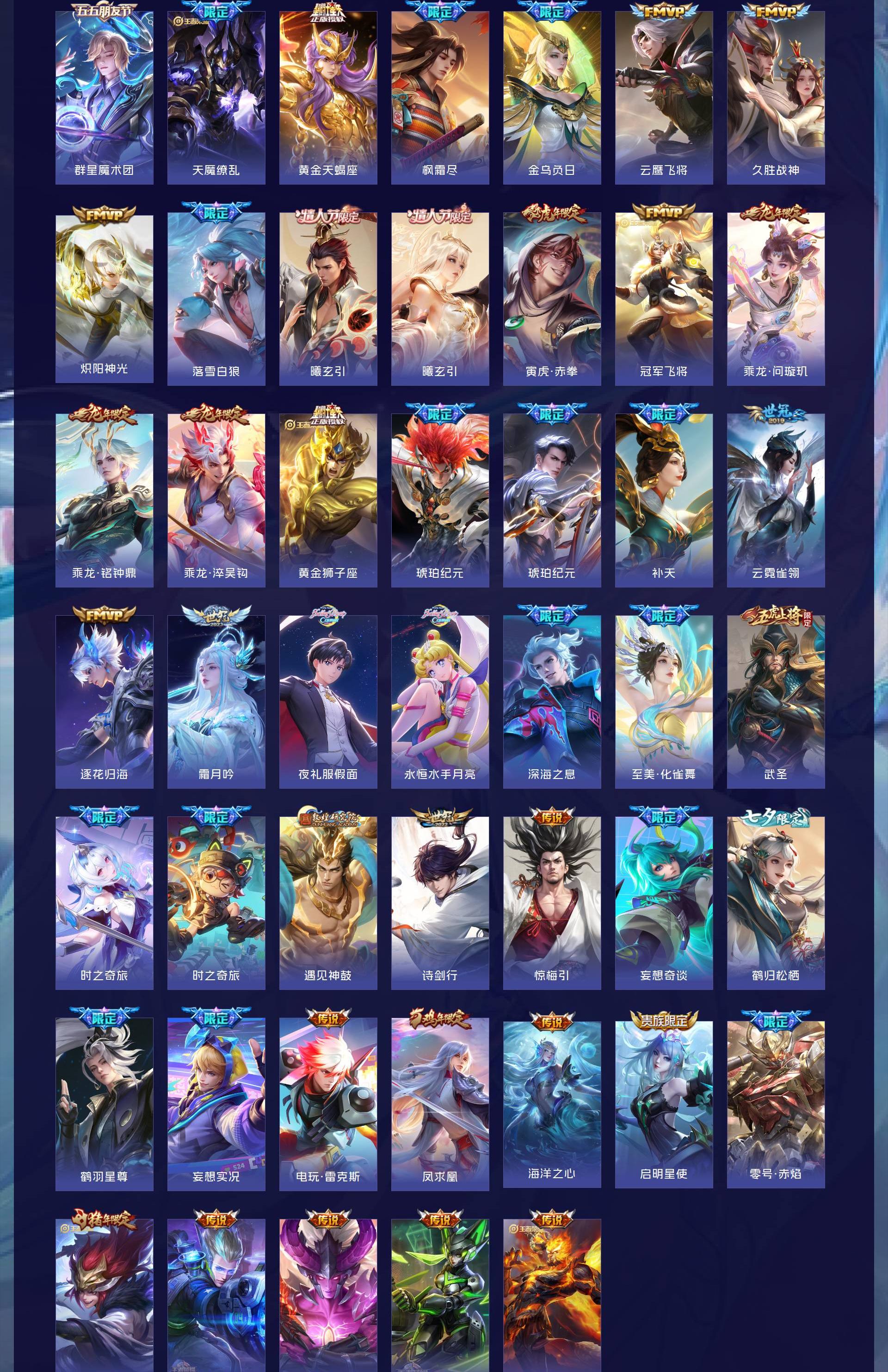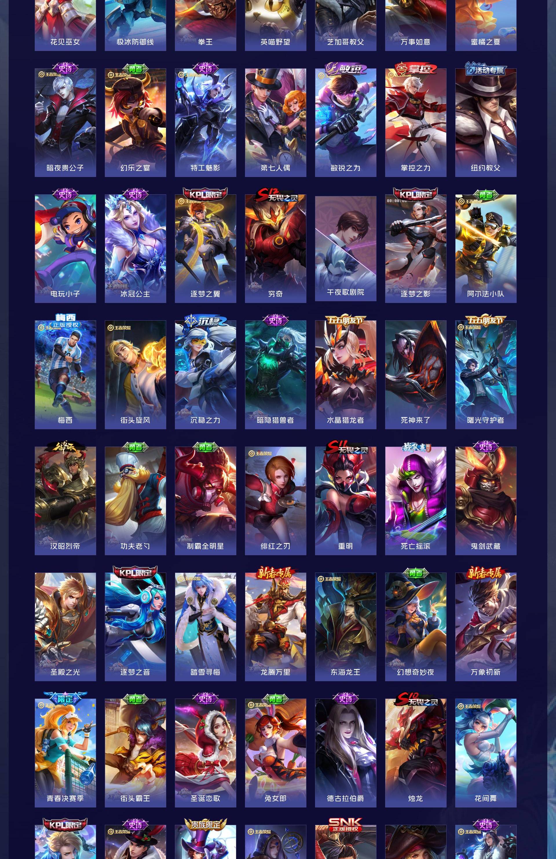 无双贵族 皮肤707 英雄130 至尊星耀 荣耀典藏6 珍品无双1 无双皮肤13 珍品传说10 星传说4 传说124