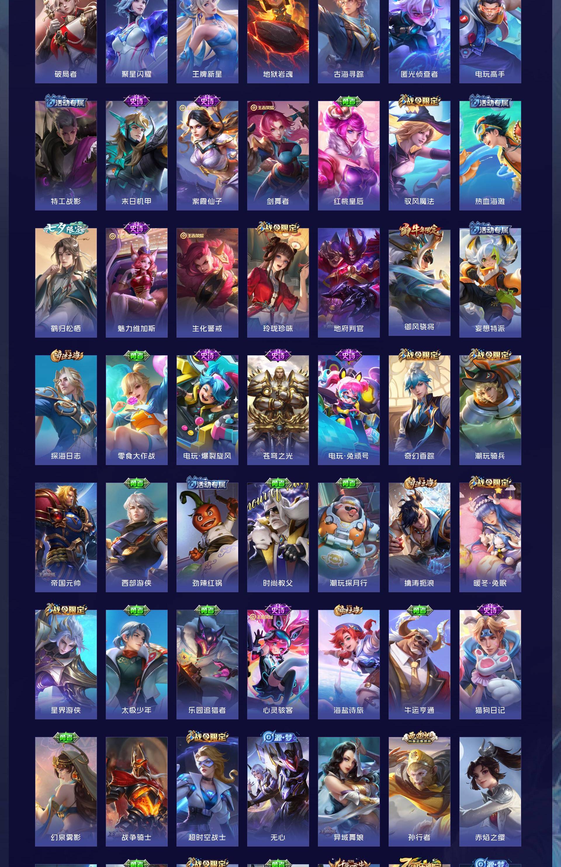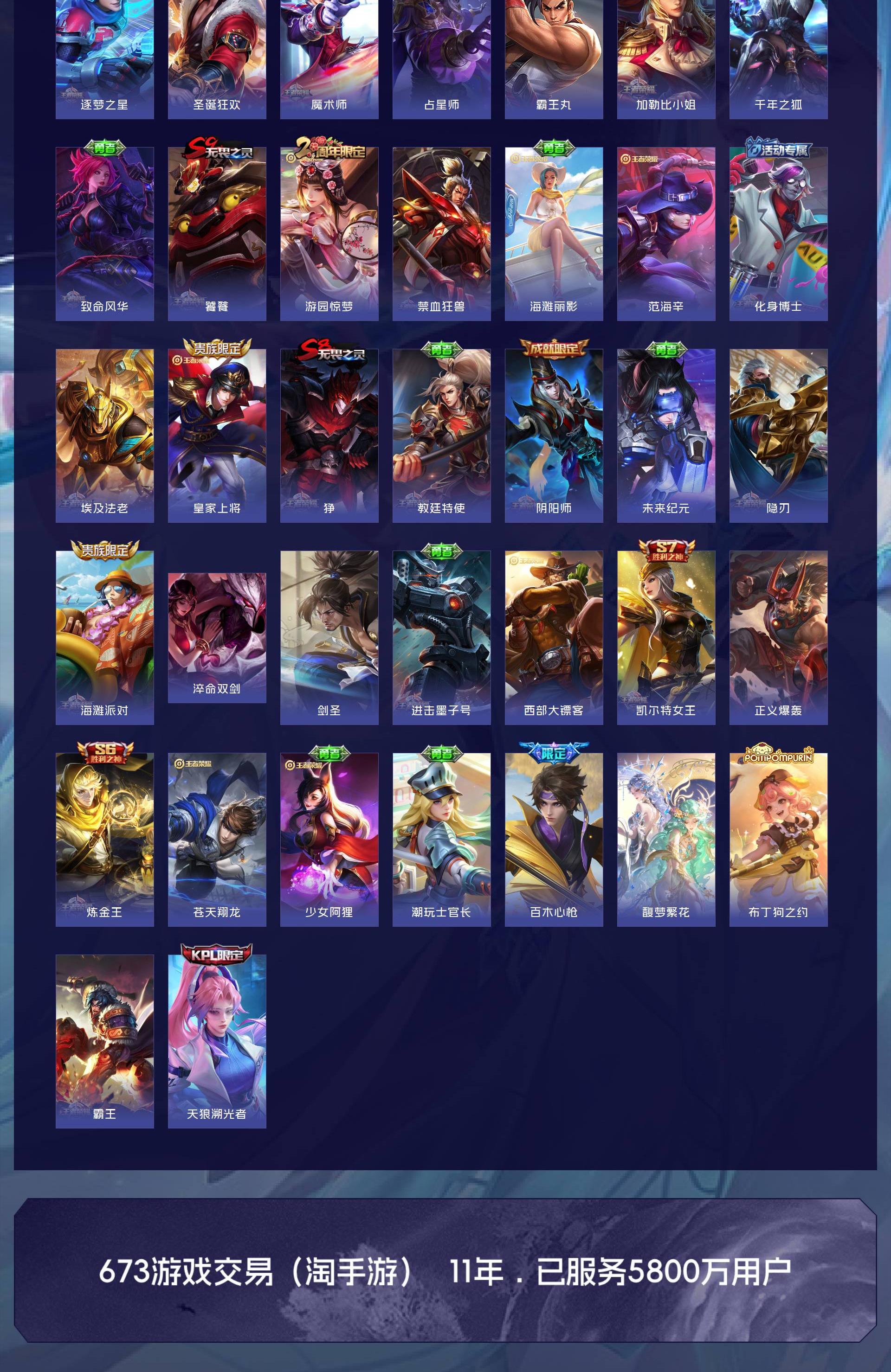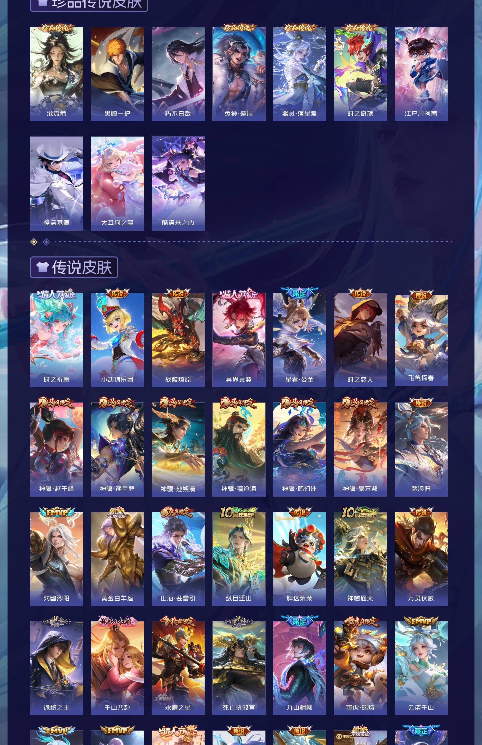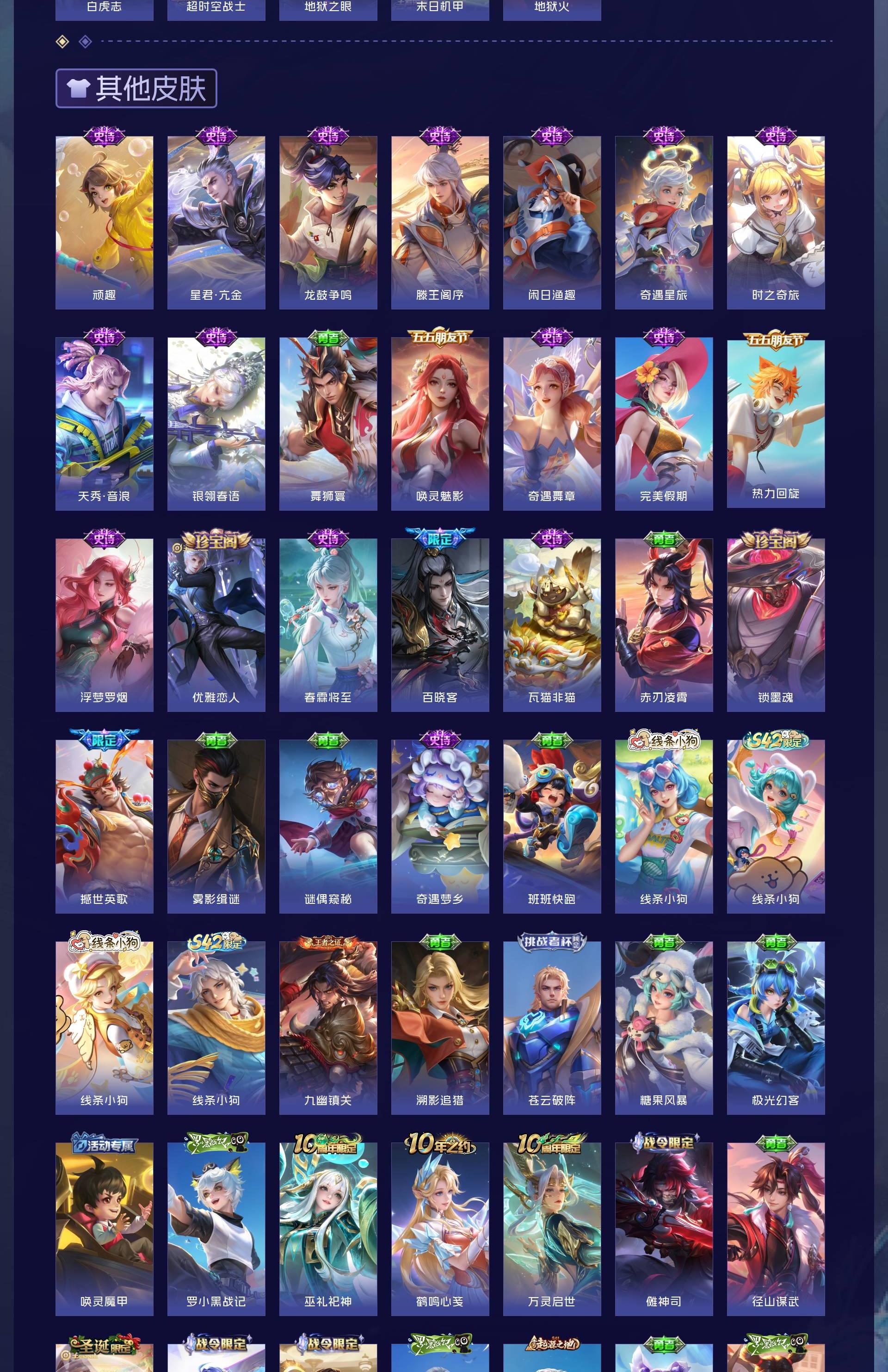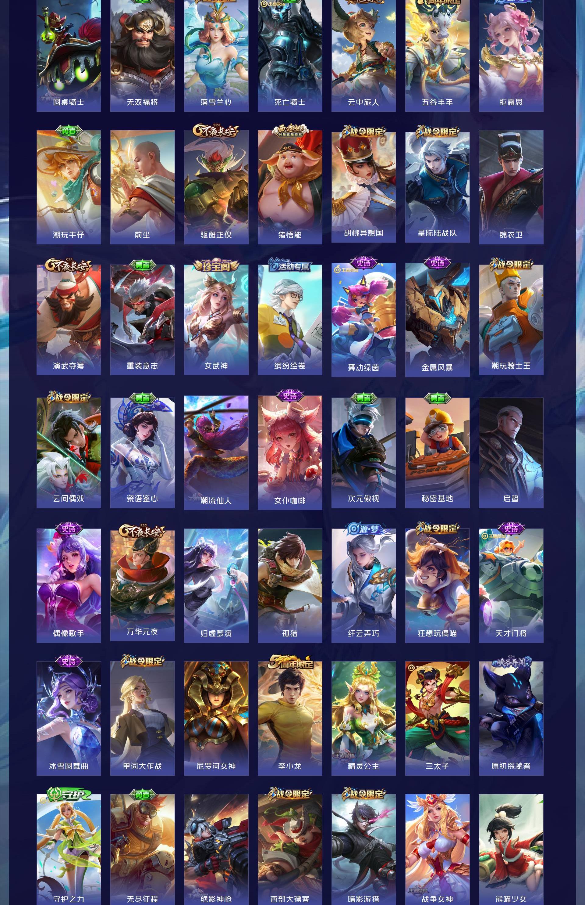 无双贵族 皮肤707 英雄130 至尊星耀 荣耀典藏6 珍品无双1 无双皮肤13 珍品传说10 星传说4 传说124