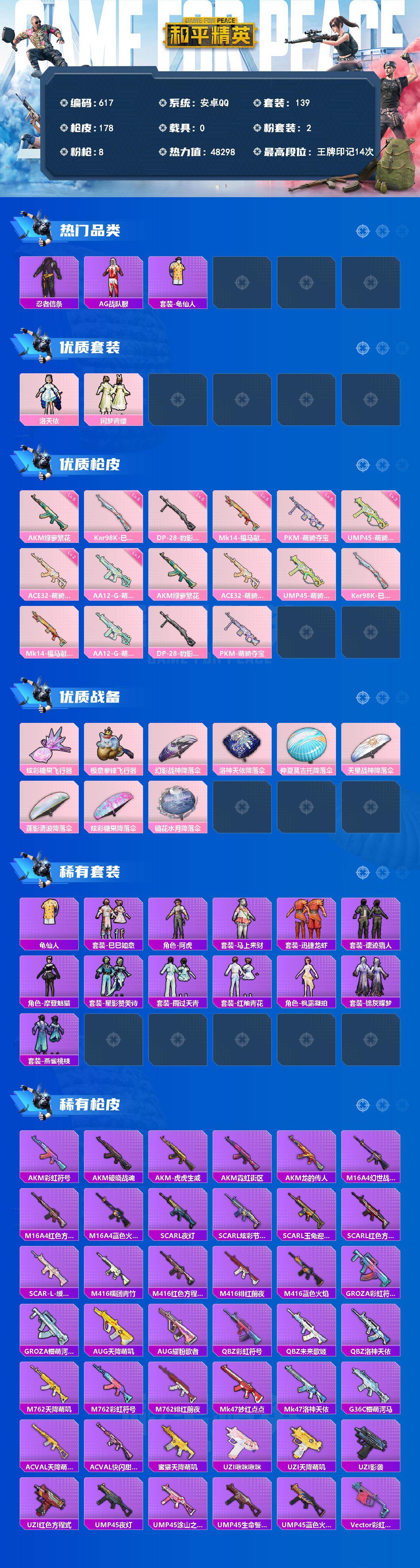 安卓手Q-2粉装-8特效枪-2粉色飞行器-48298热力值-14王牌印记-139套装-178枪皮