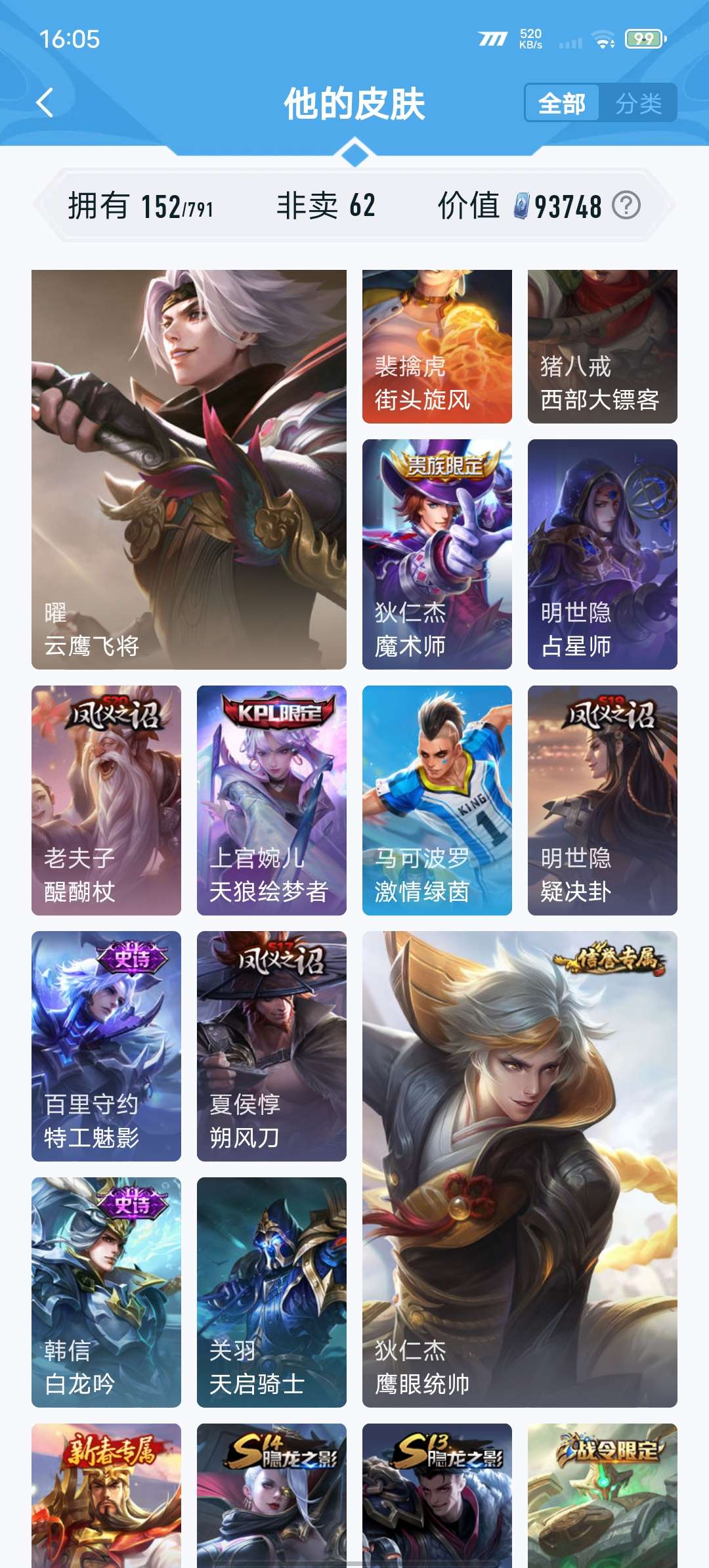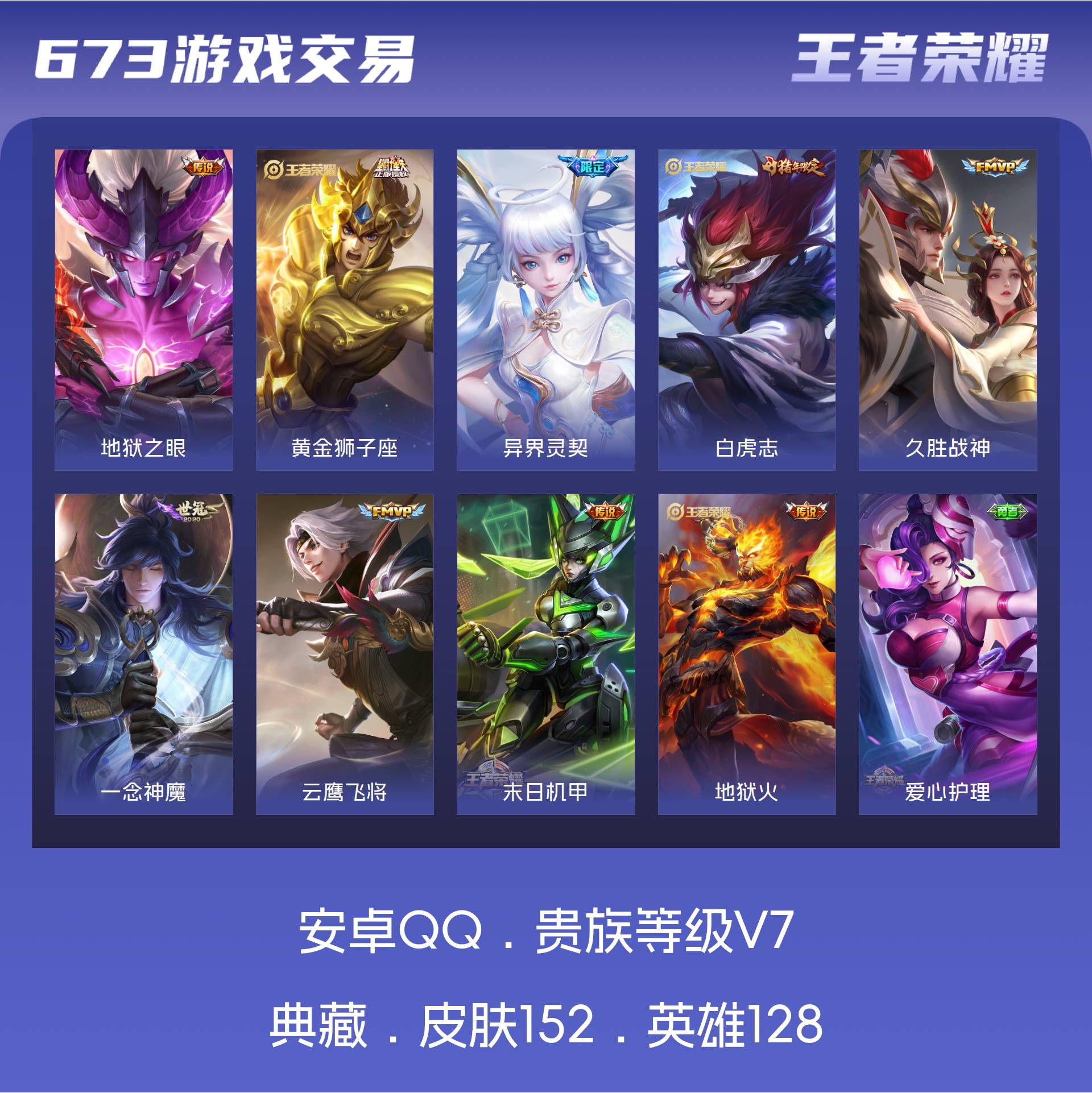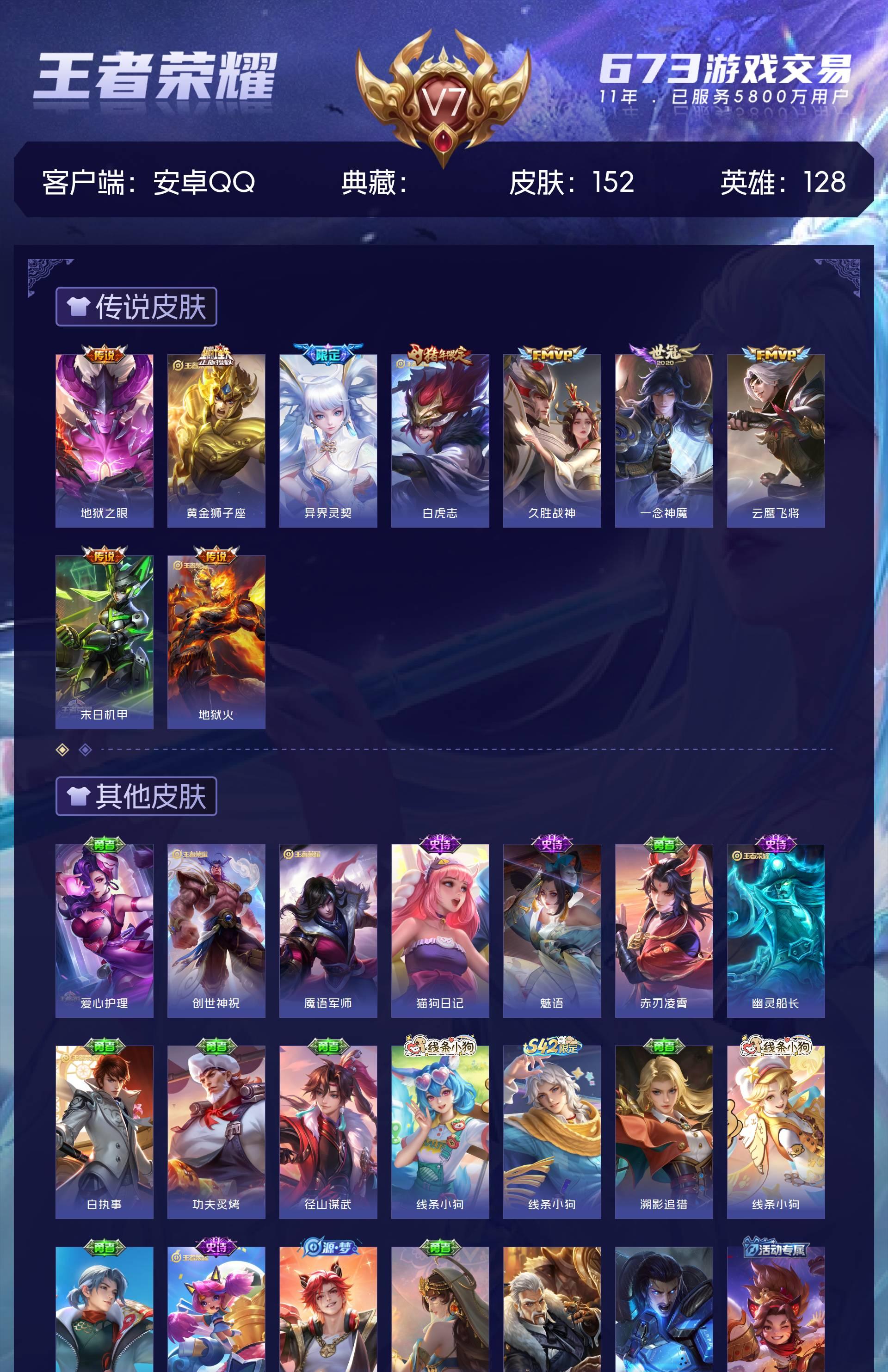 V7 皮肤152 英雄128 至尊星耀 传说9