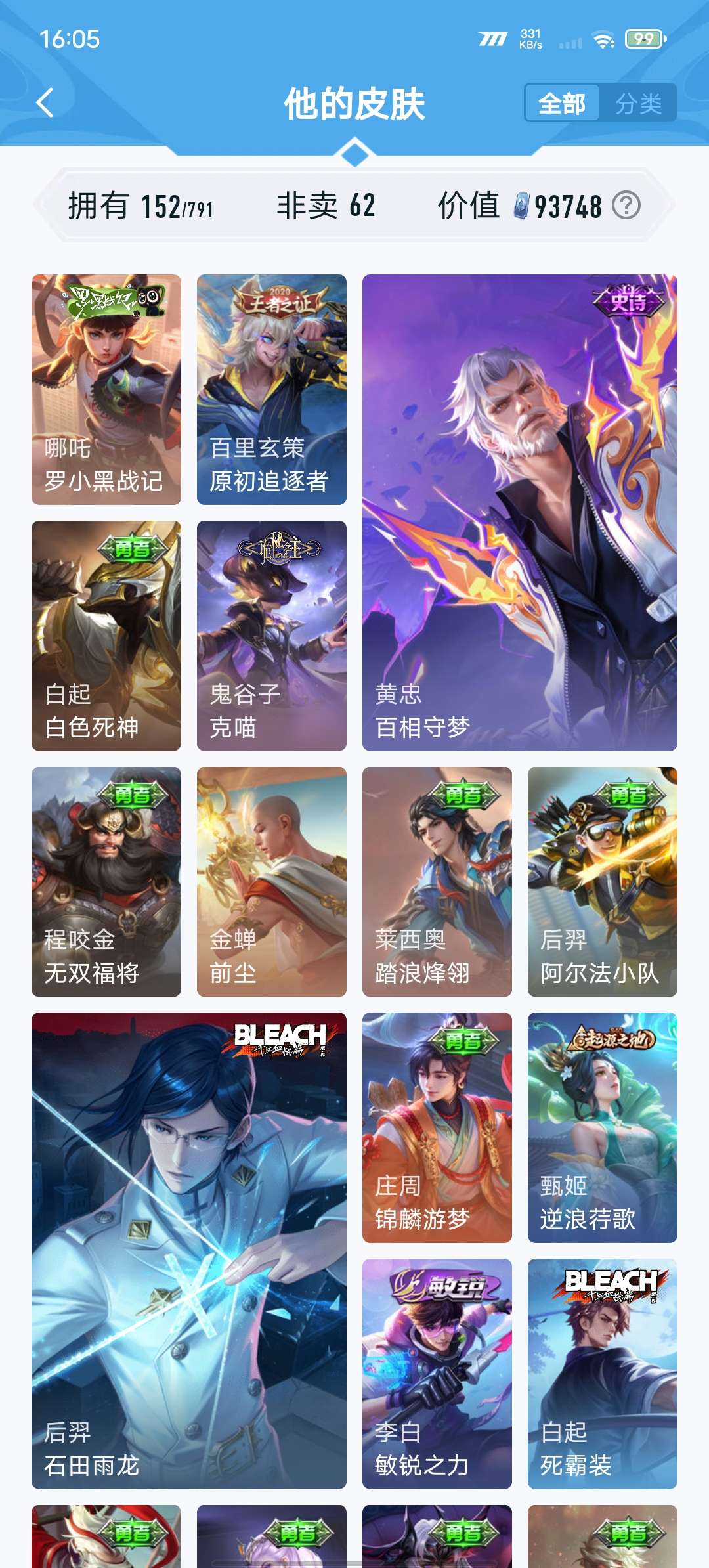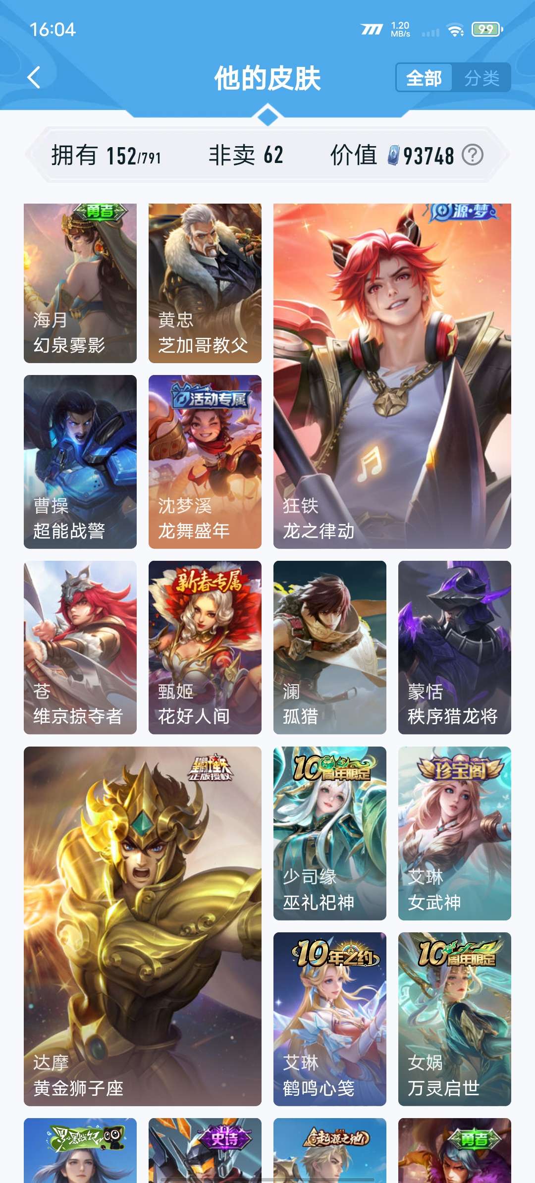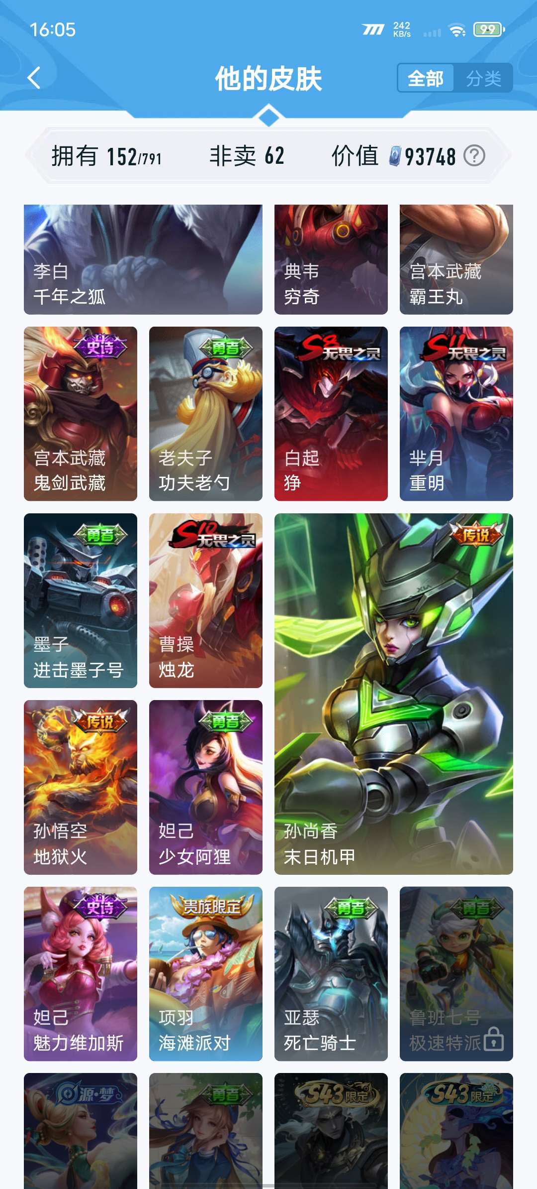 V7 皮肤152 英雄128 至尊星耀 传说9