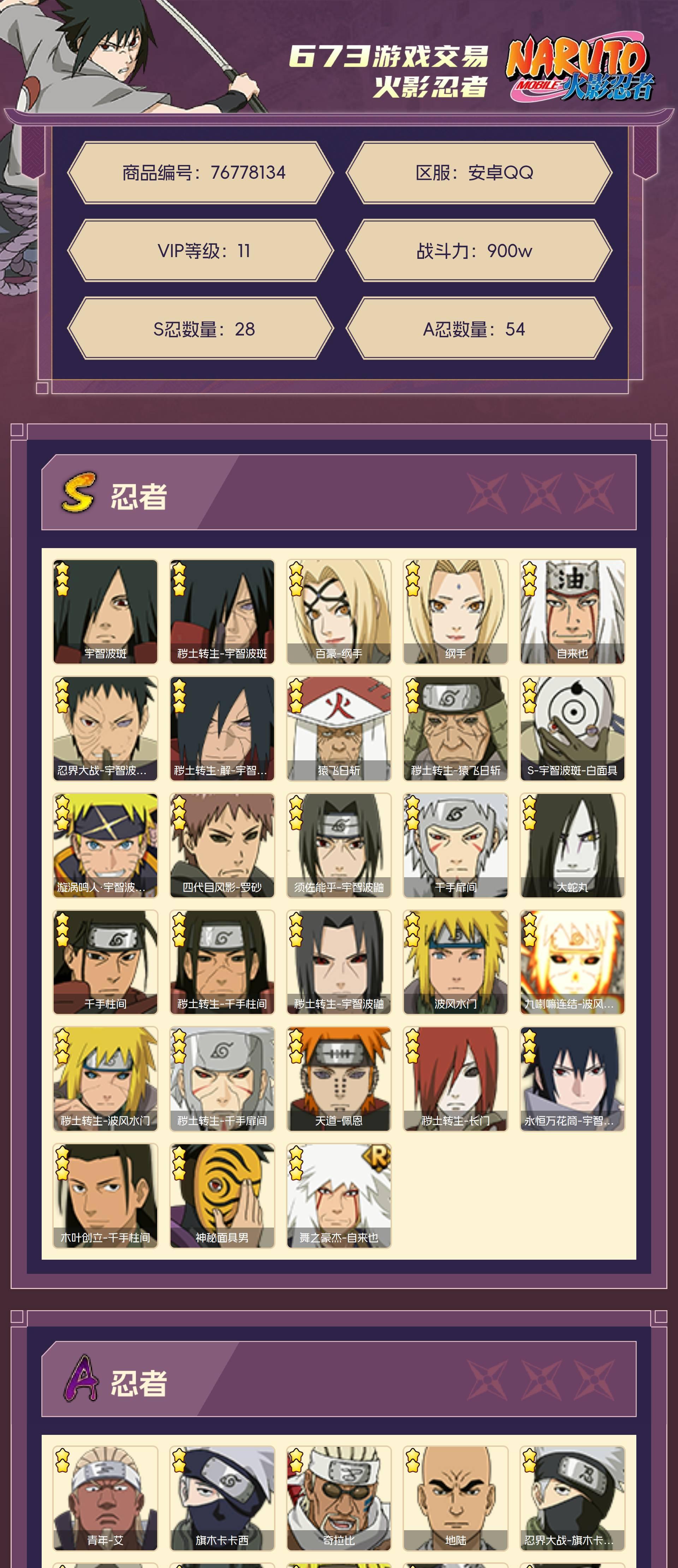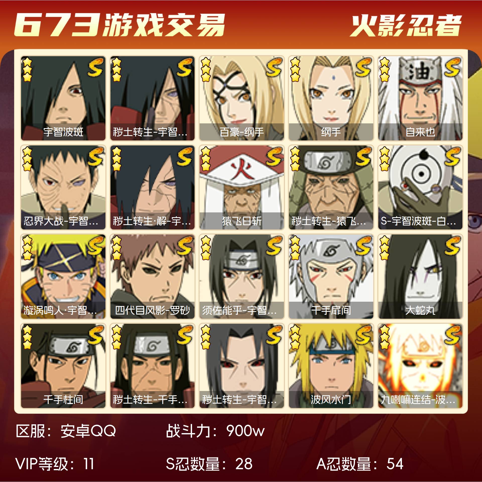 角色等级148 金币500 战斗力900w S忍28 A忍54 5星S忍者26 11 段位上忍