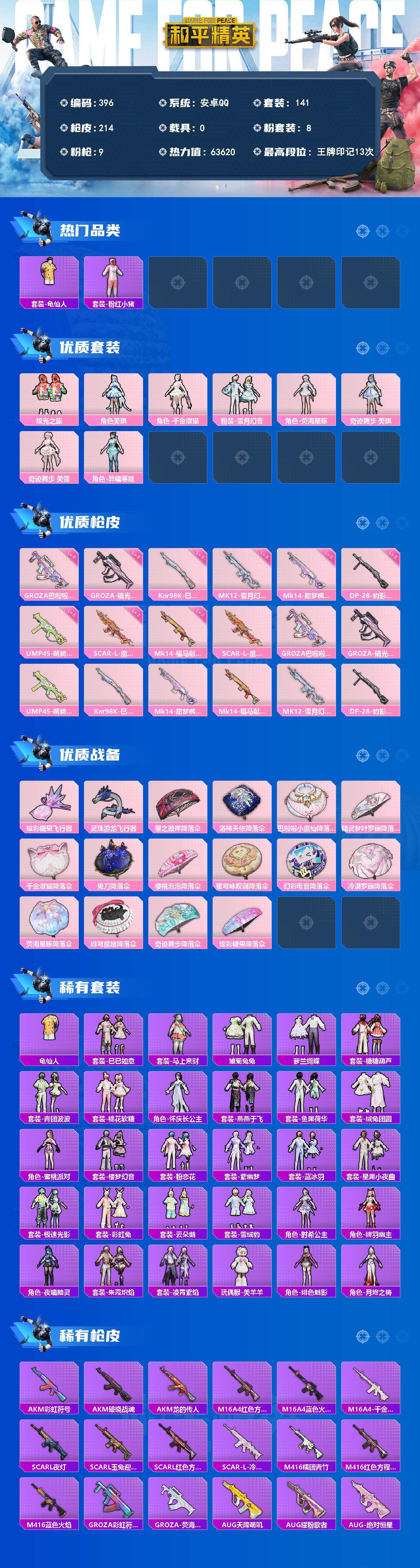 6814 可二 61级 8粉装9特效枪141套装214枪皮 13印记 【8粉装】 美琪 奇迹舞步美雪 奇迹舞步美琪 千金淑猫 雪月幻音 荧海星豚 异瞳寒姬 炫光之旅 【9特效枪】 SCAR-L-魔童闹海哪吒 (3级) Kar98K-巳巳如意 (5级) DP-28-豹影疾电 (5级) Mk14-甜梦熊击 (5级) 12-雪月幻音 (5级) GROZA-镜光银凌 (5级) GROZA-巴啦啦小魔仙 (6级) Mk14-福马献瑞 (2级) UMP45-萌骑冒险 (5级) 【2热门】 龟仙人 粉红小猪