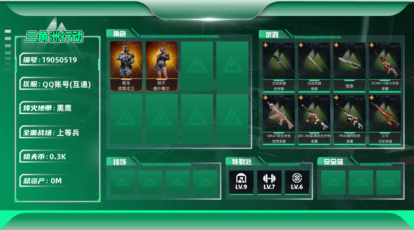 总资产:75M 2干员外观 3近战传说 27传说枪械 哈夫币:308.179K