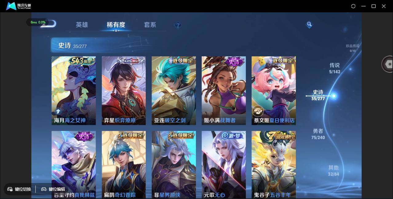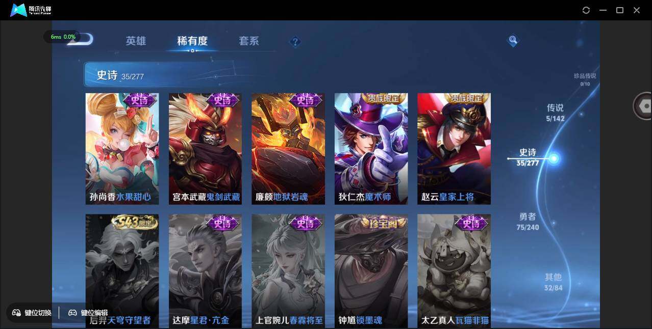【W7251】品质号.无限飓风号典藏-山海炽霜斩.碎云.末日机甲.无心.真我核磁.朱雀志.黄金武士.街头霸王-安卓Q-有二次-贵6-127英雄-148皮肤-1典藏-5传说-42限定-35史诗-6373星币-2按键-6印记-贵族积分19305-