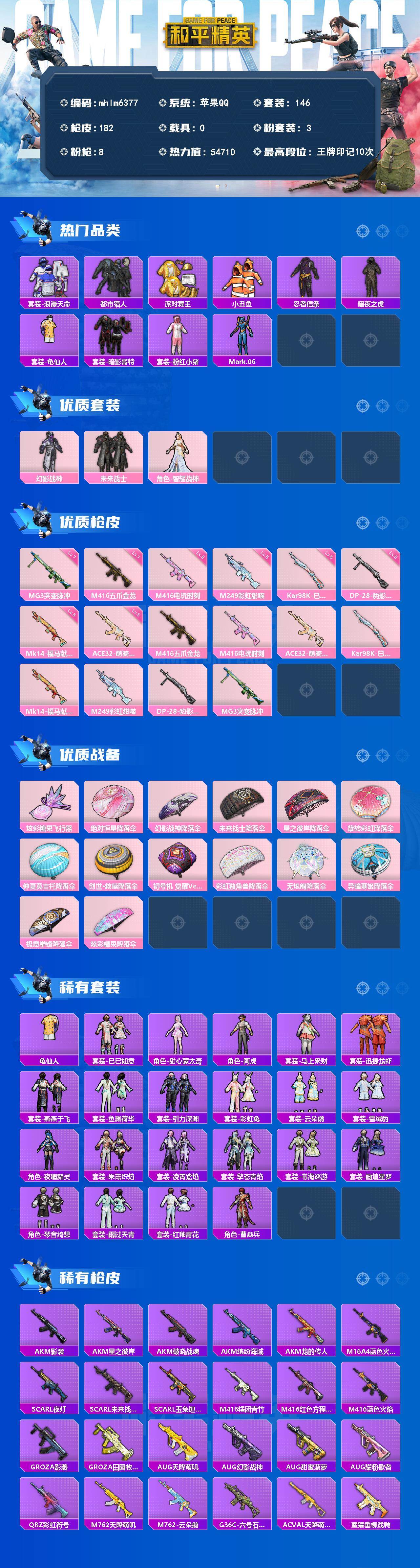 【mhlm6377】苹果手Q-3粉装-8特效枪-1粉色飞行器-54710热力值-10王牌印记-146套装-182枪皮