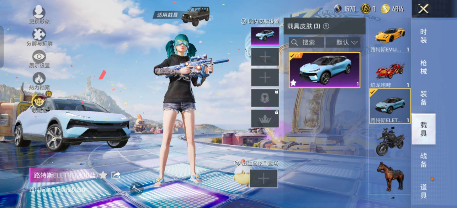 3载具42套装-66枪皮-安卓手Q-包人脸-车皮小号-4王牌印记-2特效枪-3载具-21014热力值-42套装-66枪皮【2特效枪】MG3-洛神天依/1级,Vector-环太平洋/5级【1稀有紫装】深海小丑鱼【3稀有载具】路特斯ELETRE(冰川蓝),路特斯EVIJA(星际黄),焰龙咆哮【42稀有时装】深海小丑鱼,萌趣咩咩,夏日音浪,白熊同盟,特训学院,沁蓝冰爽,飞驰魅影,音速流光,湖蓝色名流