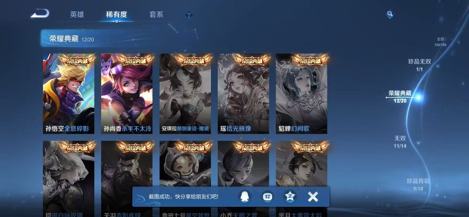 【730皮肤13水晶1珍品无双11无双9星元9珍品130传