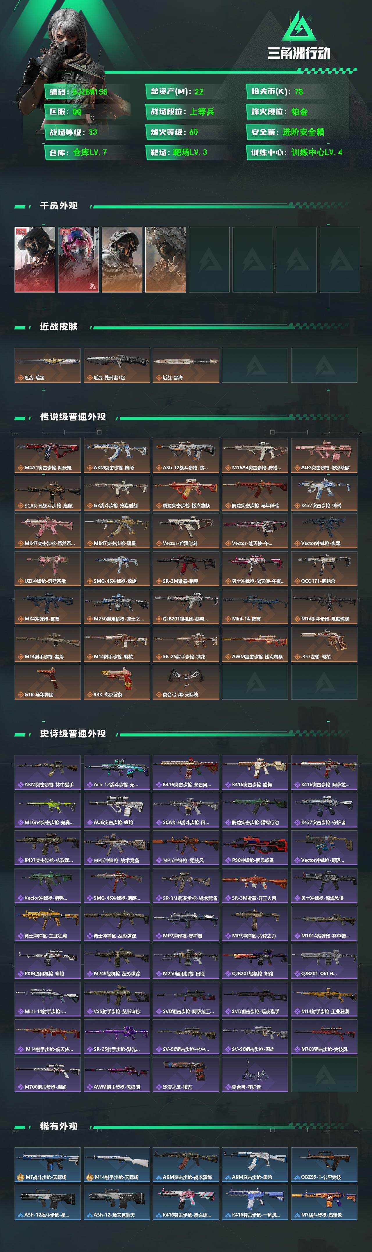 【SJZBW158】总资产22M/哈夫币7万/传说近战数1/传说枪皮数33/战