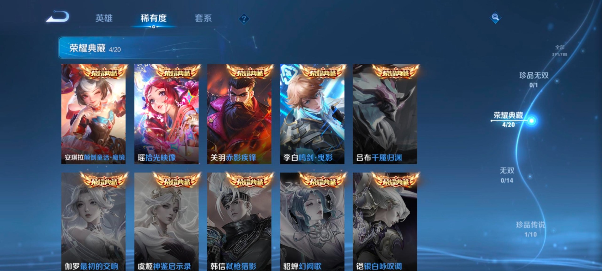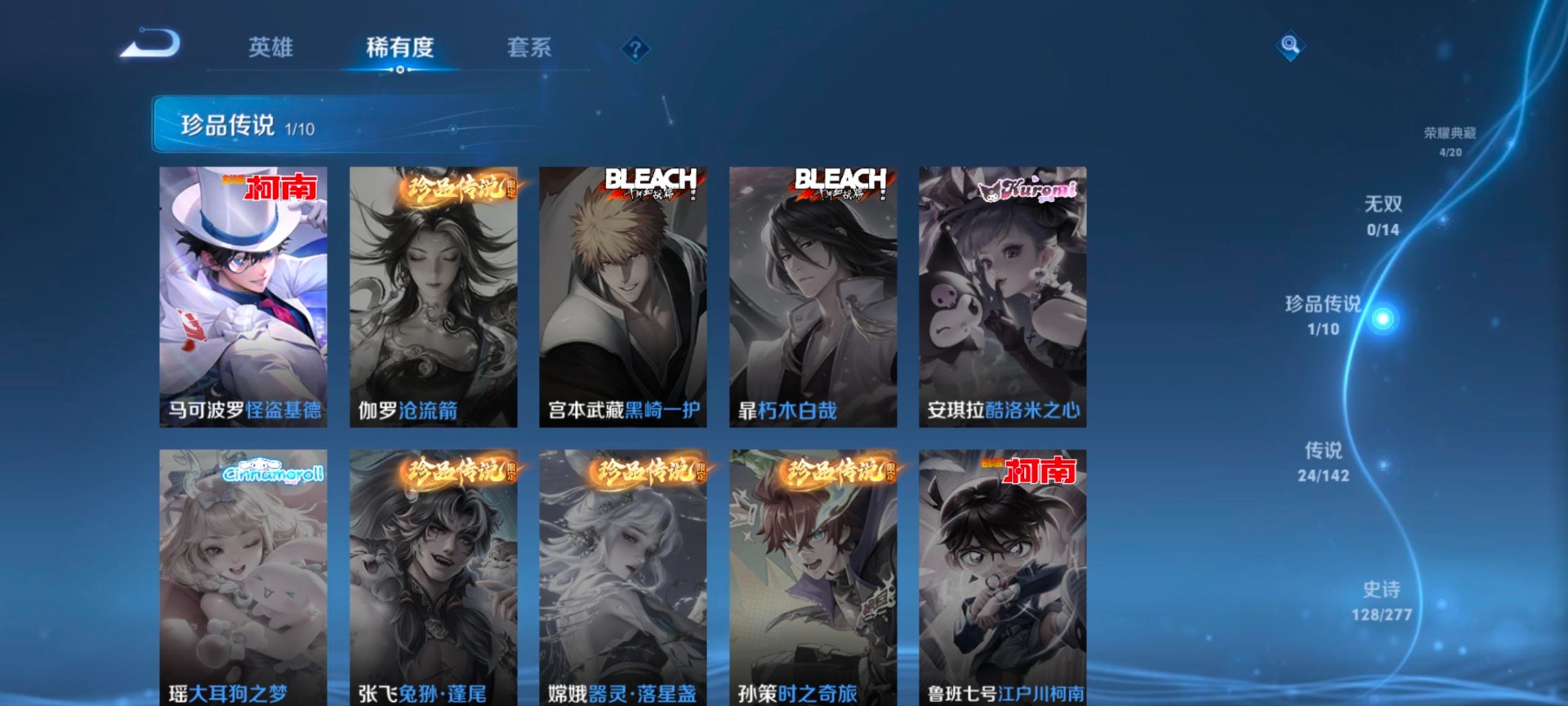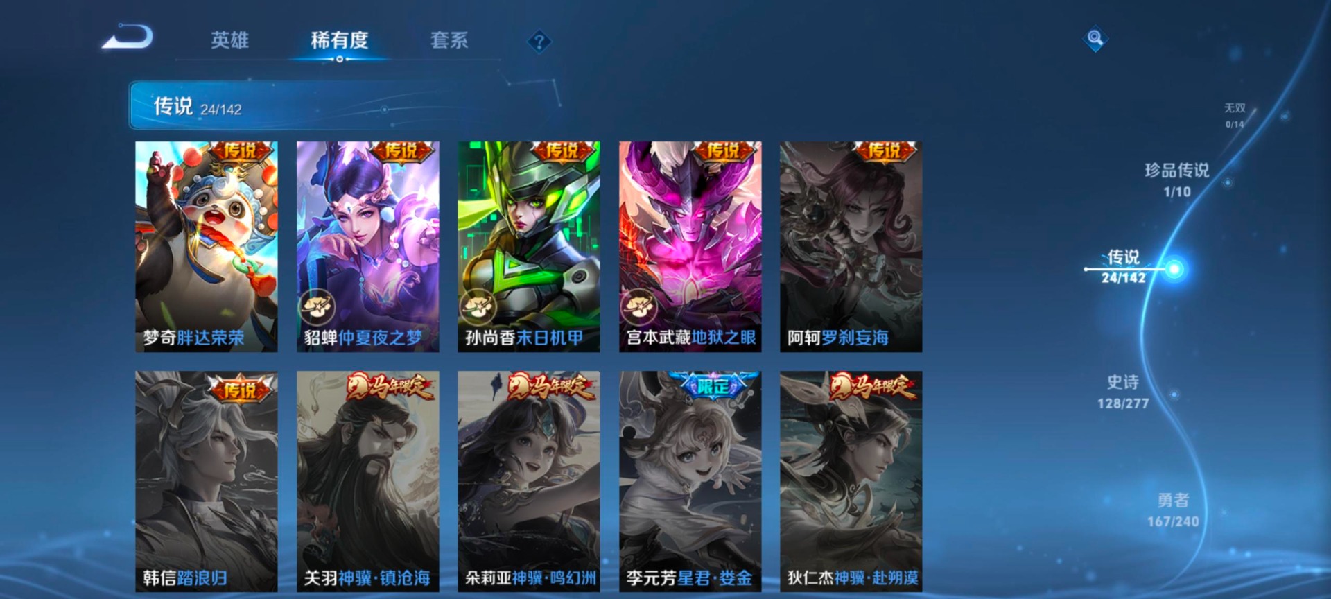 V8 4典藏 1珍品传说 24传说 129英雄 391皮肤 可二次 可修改实名 男号