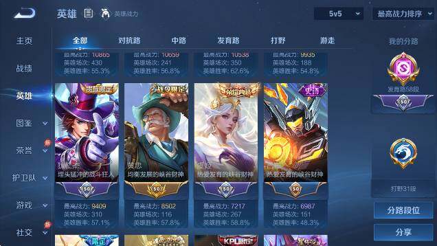 贵族等级8/荣耀典藏数量2/传说皮肤数量14/史诗皮肤数量92/皮肤数量286/