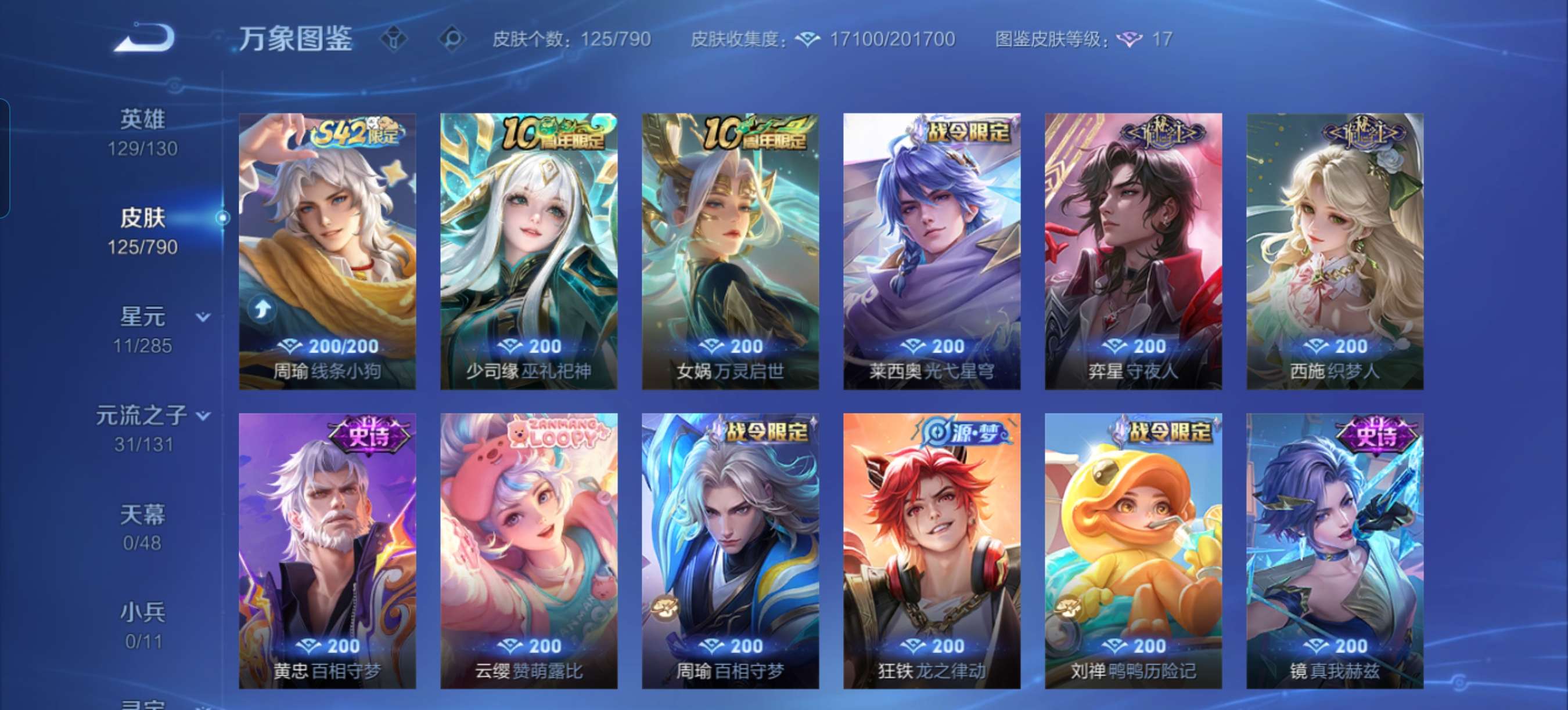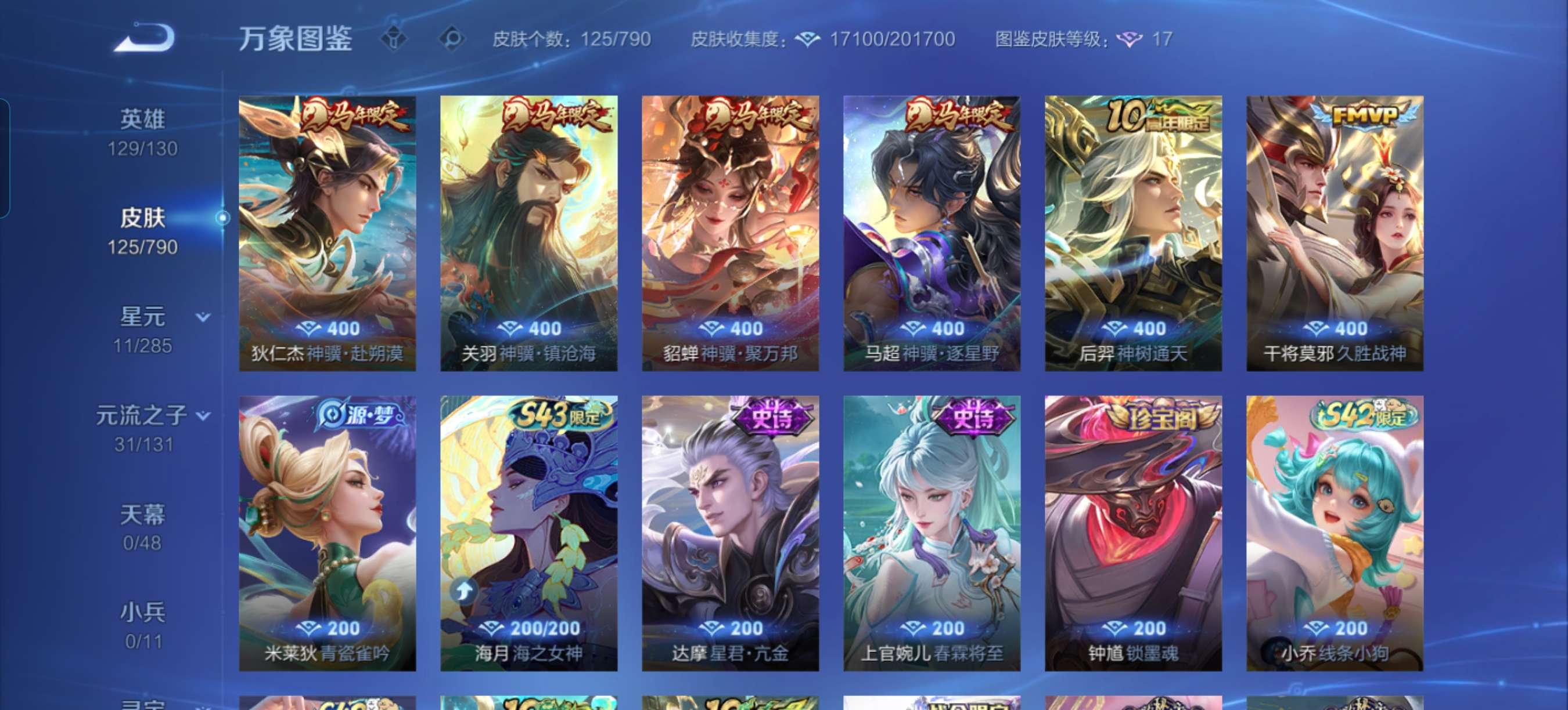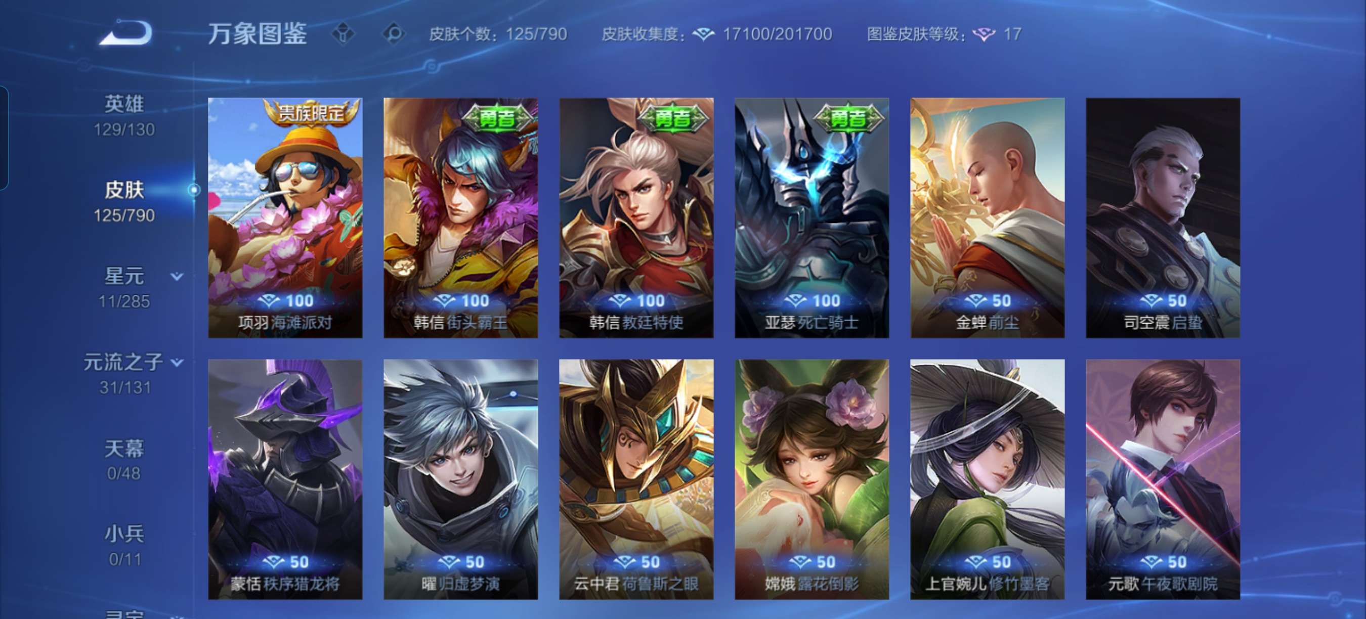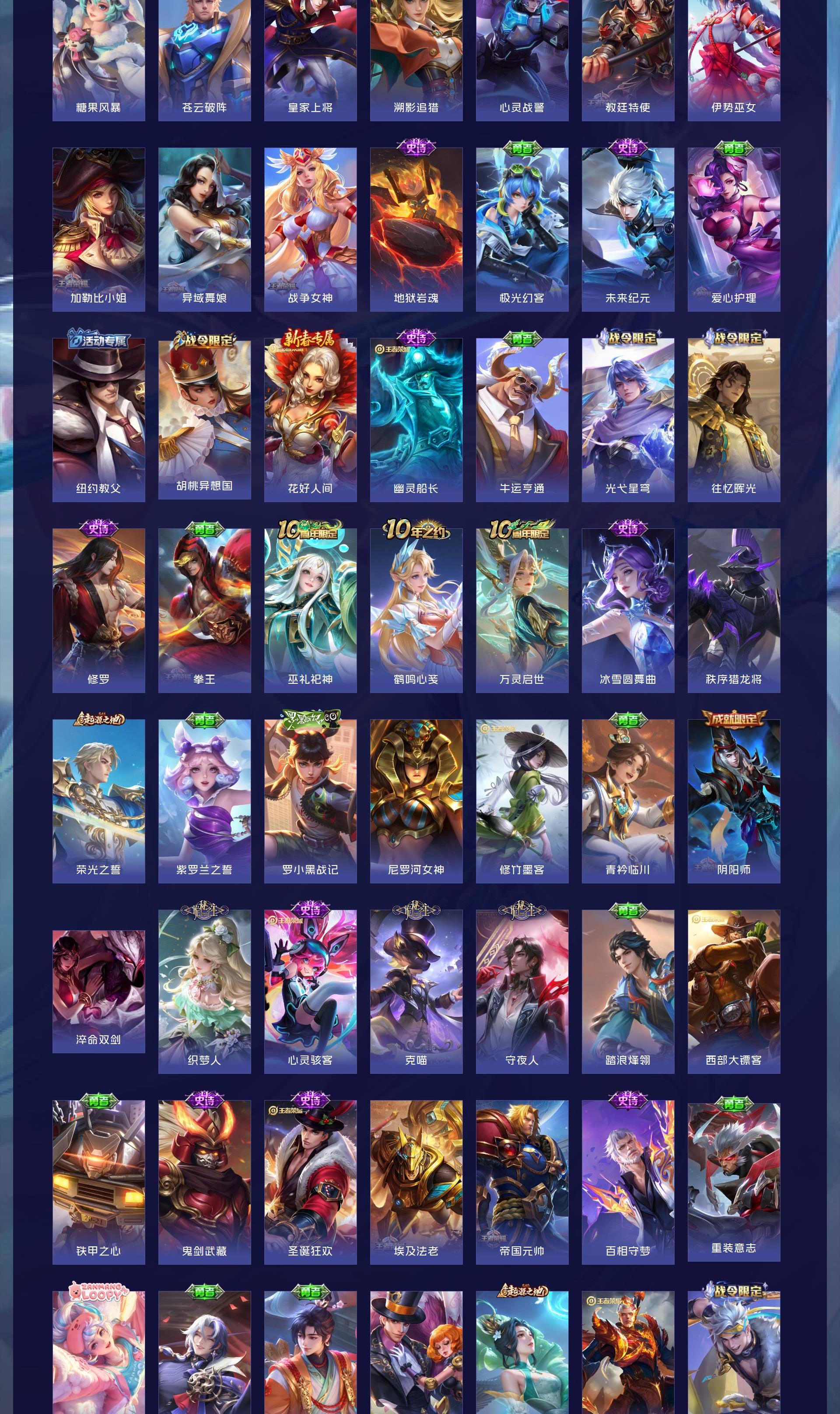 除武则天都有4个马年限定3个十周年限定三个诡秘之主限定四个星传说到没有皮肤