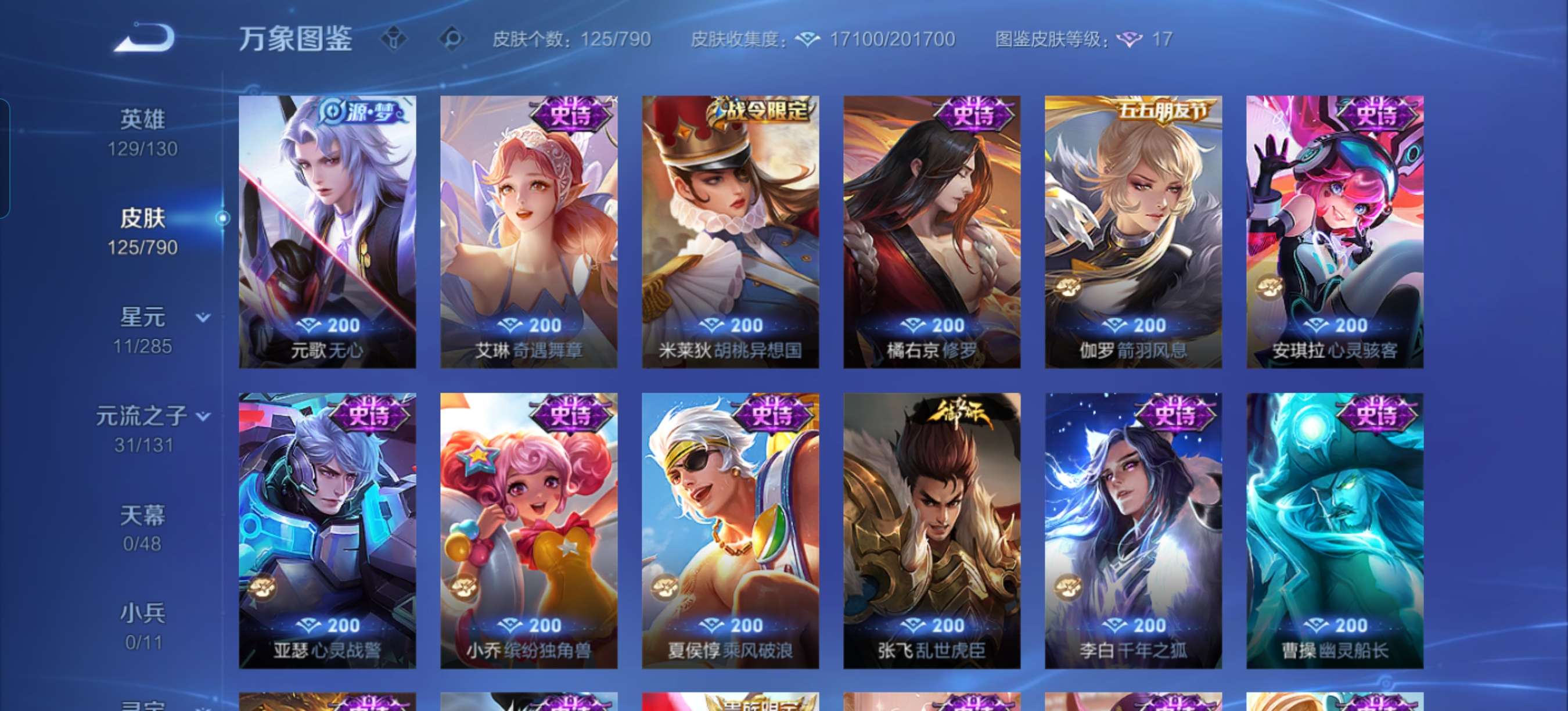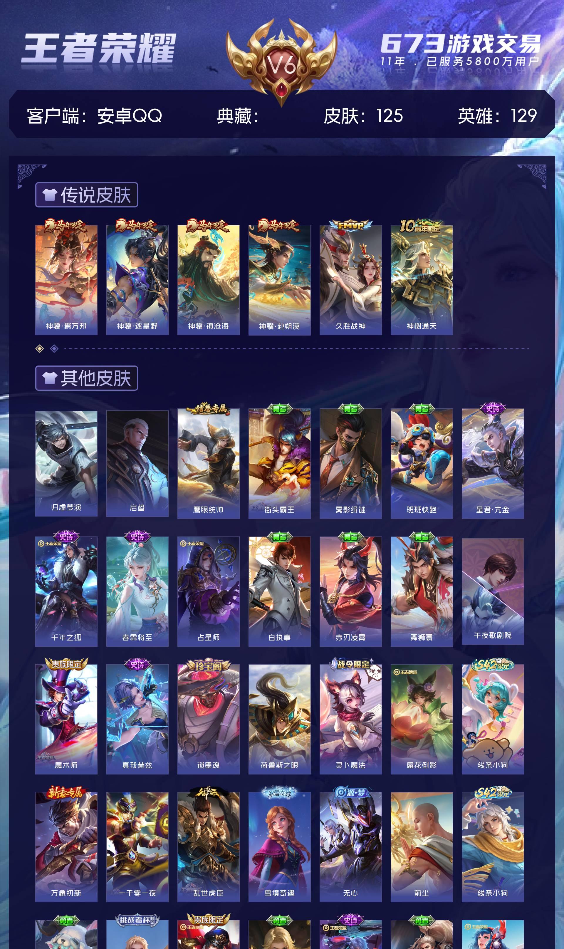 V6 皮肤125 英雄129 尊贵铂金 星传说4 传说6