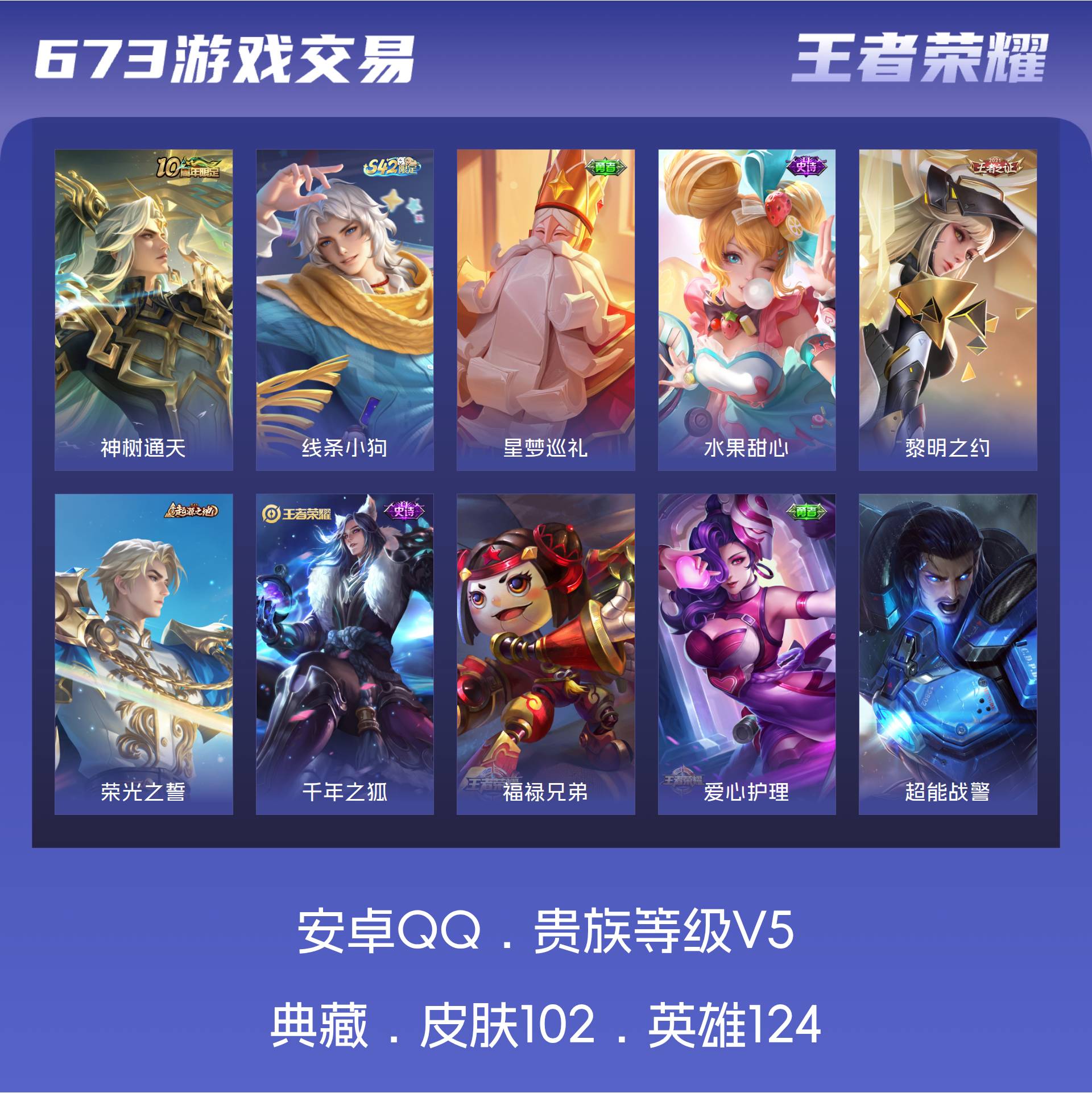 V5 皮肤102 英雄124 尊贵铂金 传说1