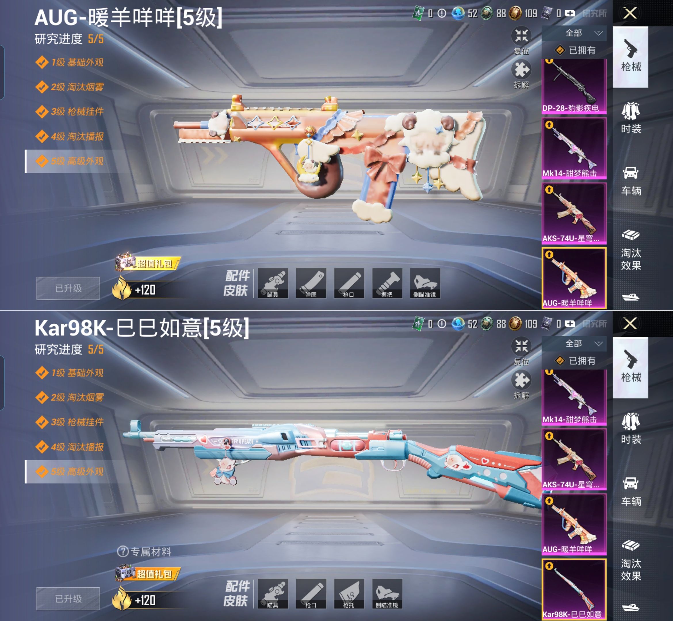 【2粉装】角色-冷漠罗丽,星之彼岸【7特效枪】Mk14-福马献瑞[5级],DP-28-豹影疾电[5级],AKS-74U-星穹咏叹调[6级],Kar98K-巳巳如意[5级],Mk14-甜梦熊击[5级],UMP45-萌骑冒险[4级],AUG-暖羊咩咩[5级]【7稀有】小丑鱼,深海小丑鱼,派