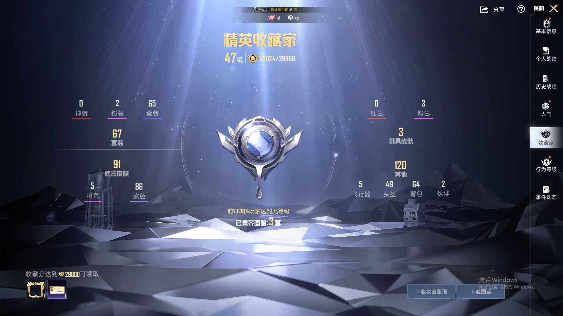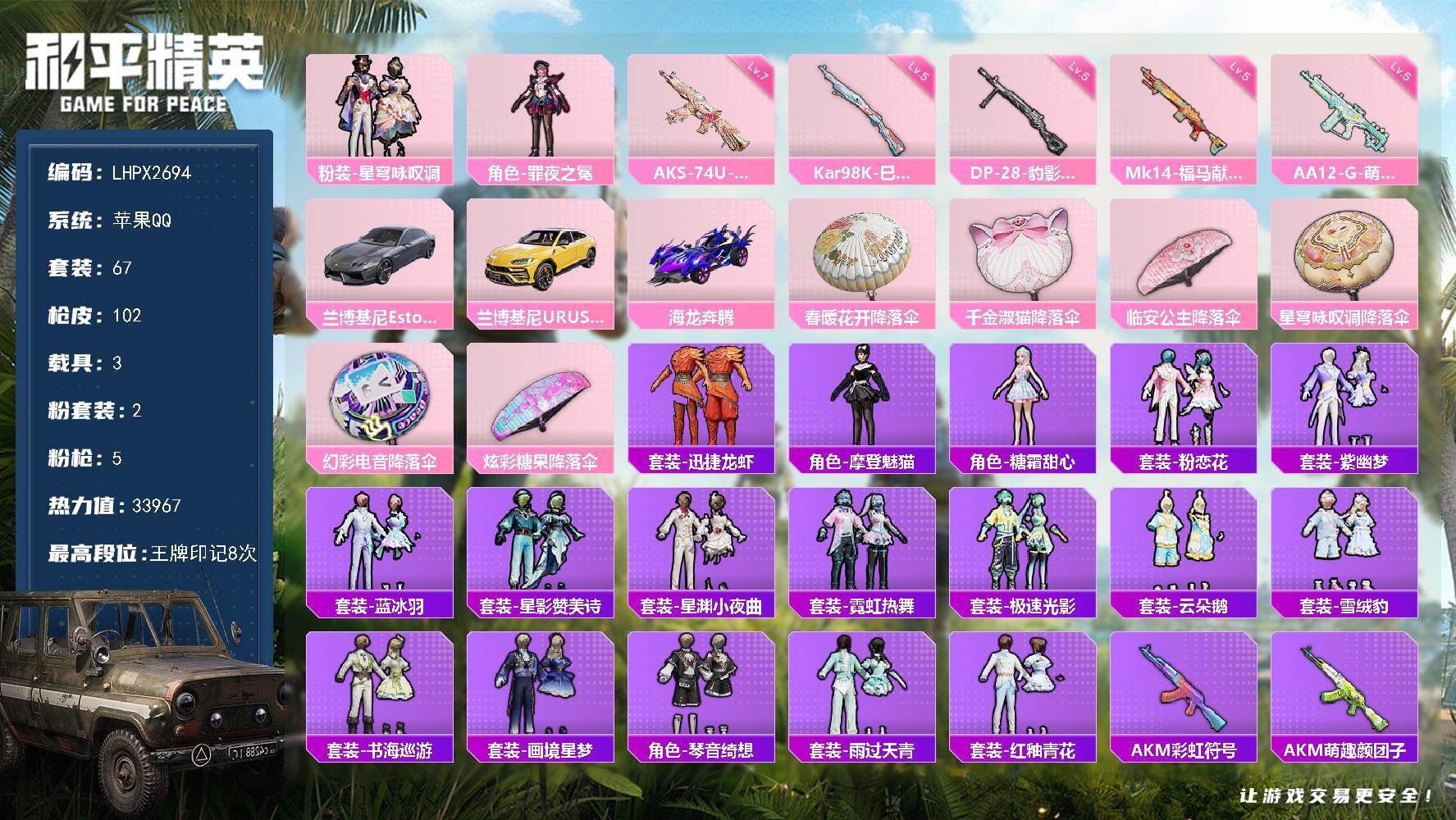 67套装/枪械5/装备131/载具3/战备73/王牌印记8/