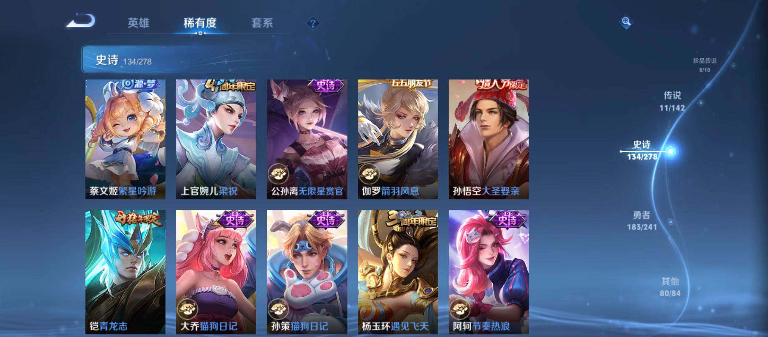 【限定皮肤】:蔡文姬夏日便利店,大乔绒语心约,虞姬夏日便利店,姜子牙天穹之誓,杨戬破阵退雄兵,李白谪仙醉月,狄仁杰阴阳师,赵云皇家上将,妲己
