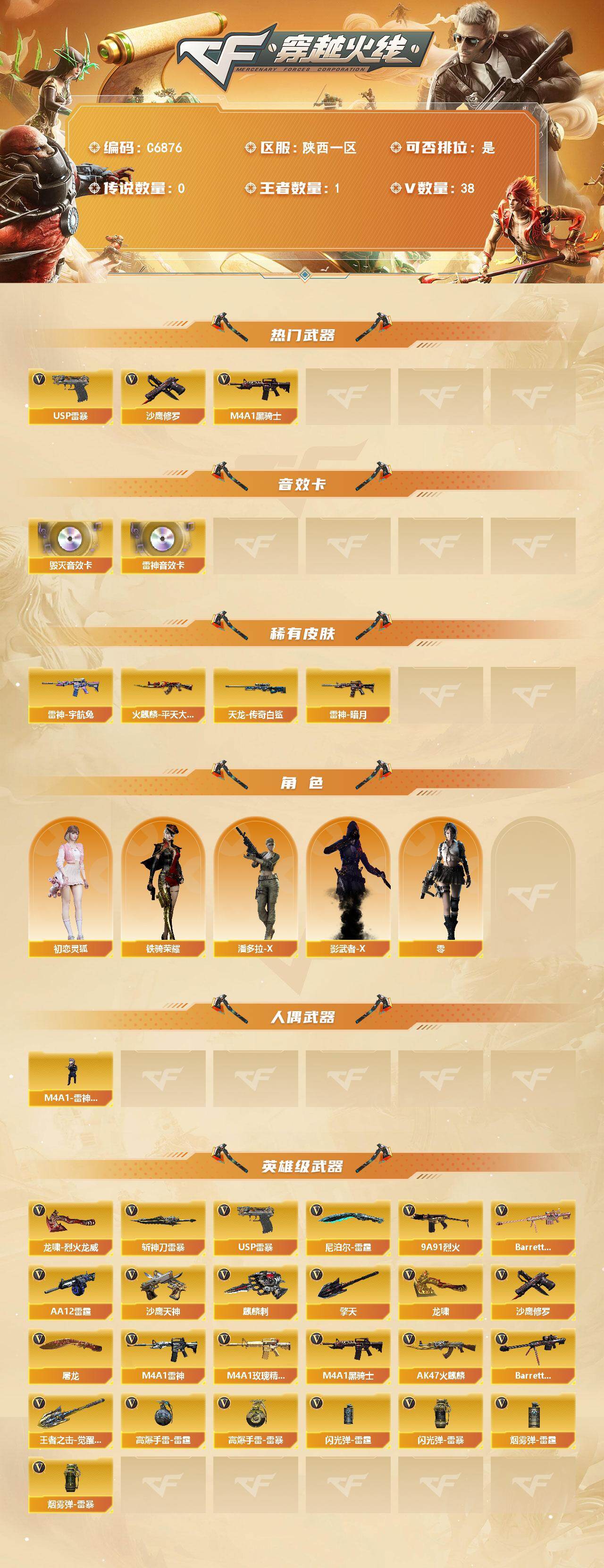陕西一区-39V-1王者武器数-0炫金武器数