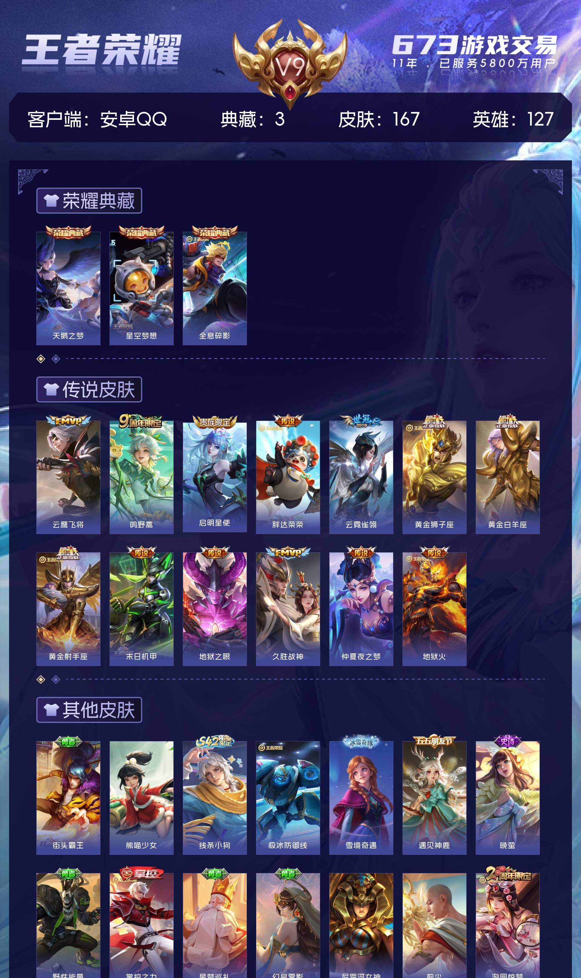 V9 皮肤167 英雄127 荣耀黄金 荣耀典藏3 星传说2 传说13