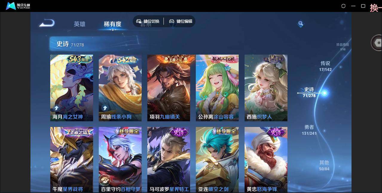 3060709 3856个紫星币 安卓Q-V7-至尊星耀I段位-128英雄-271皮肤-1典藏皮肤-1珍品传说-17传说-69史诗