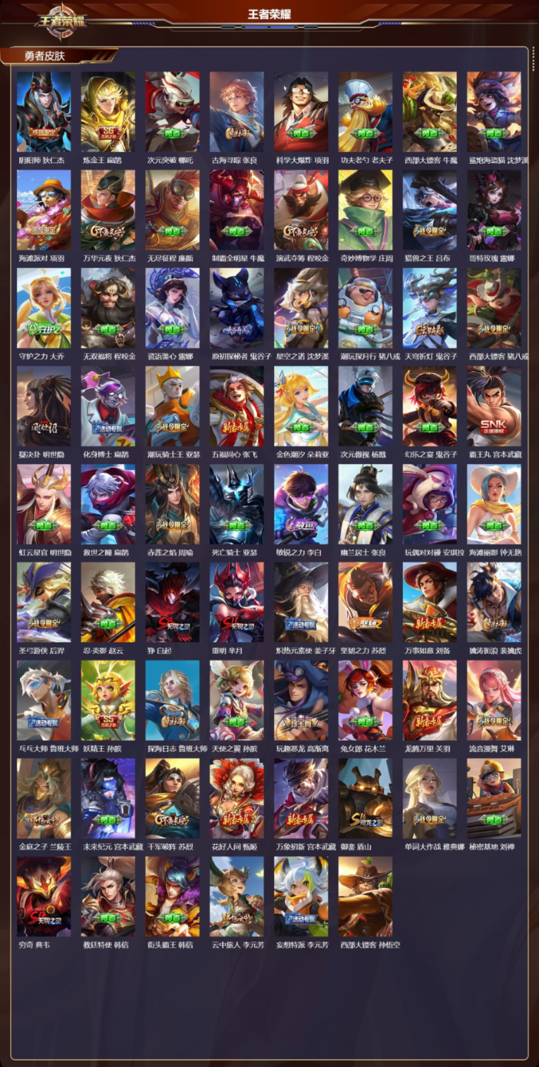 126英雄265皮肤-苹果QQ/可改二次/精品皮肤号/尊贵铂金/265皮肤/126英雄/1典藏/19传说/95史诗/9稀有英雄