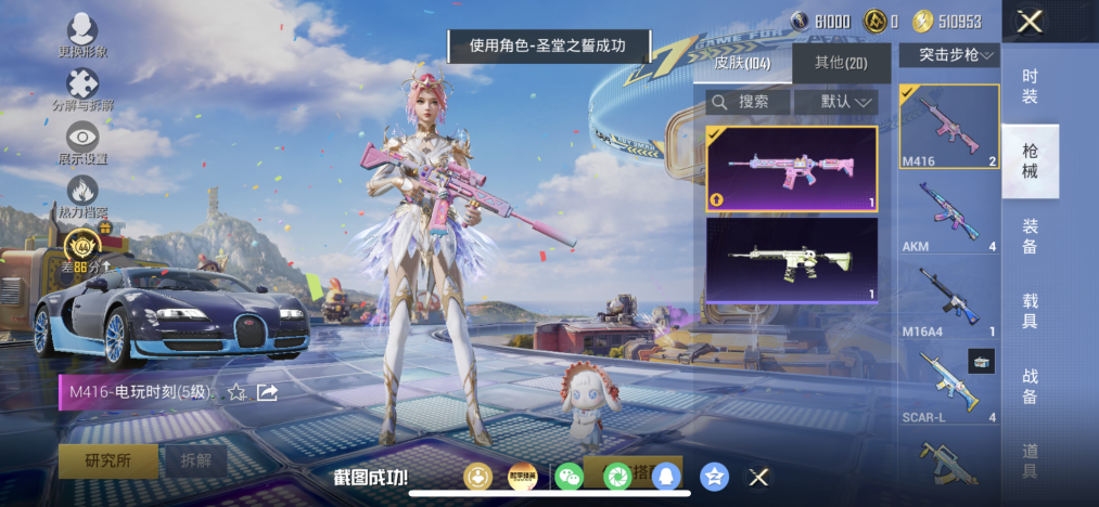 【3粉装5特效枪2载具 秒换绑不用等】 苹果Q区-30573热力值-67套装-104枪皮 【2载具】 仰望U7先锋版(阿盖尔紫) 布加迪威龙(海洋蓝)【2稀有】 Mark.06蓝螳螂 8号机粉螳螂【3粉装】 圣堂之誓 繁龙极客 角色-烟云彩露【5特效枪】 Kar98K-巳巳如意(5级) M416-电玩时刻(5级) DP-28-豹影疾电(5级) MG-36-沧焰双生(5级) UM