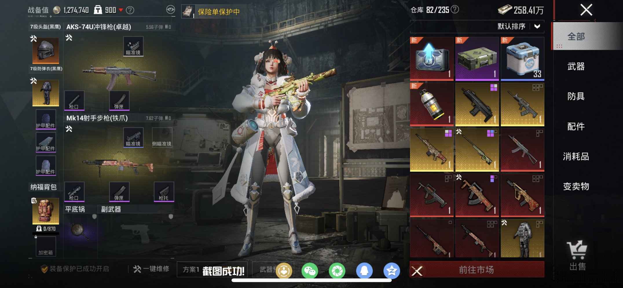 【M4满级风花雪月9特效枪3粉装1载具 秒换绑不用等】 苹果Q区-71224热力值-154套装-244枪皮 【1载具】 兰博基尼URUS(明艳黄)【3粉装】 沙场疾风 俏雪含霜 角色-烟云彩露【9特效枪】 M416-风花雪月(7级) AKS-74U-森灵之息(5级) Mk14-福马献瑞(5级) UMP45-萌骑冒险(4级) AKM-绿萝繁花(5级) Kar98K-巳巳如意(5级) M416-电玩时刻(5级) GROZA-镜光银凌(5级) DP-28-豹影疾电(5级)【199热门】 浪漫天命 小丑