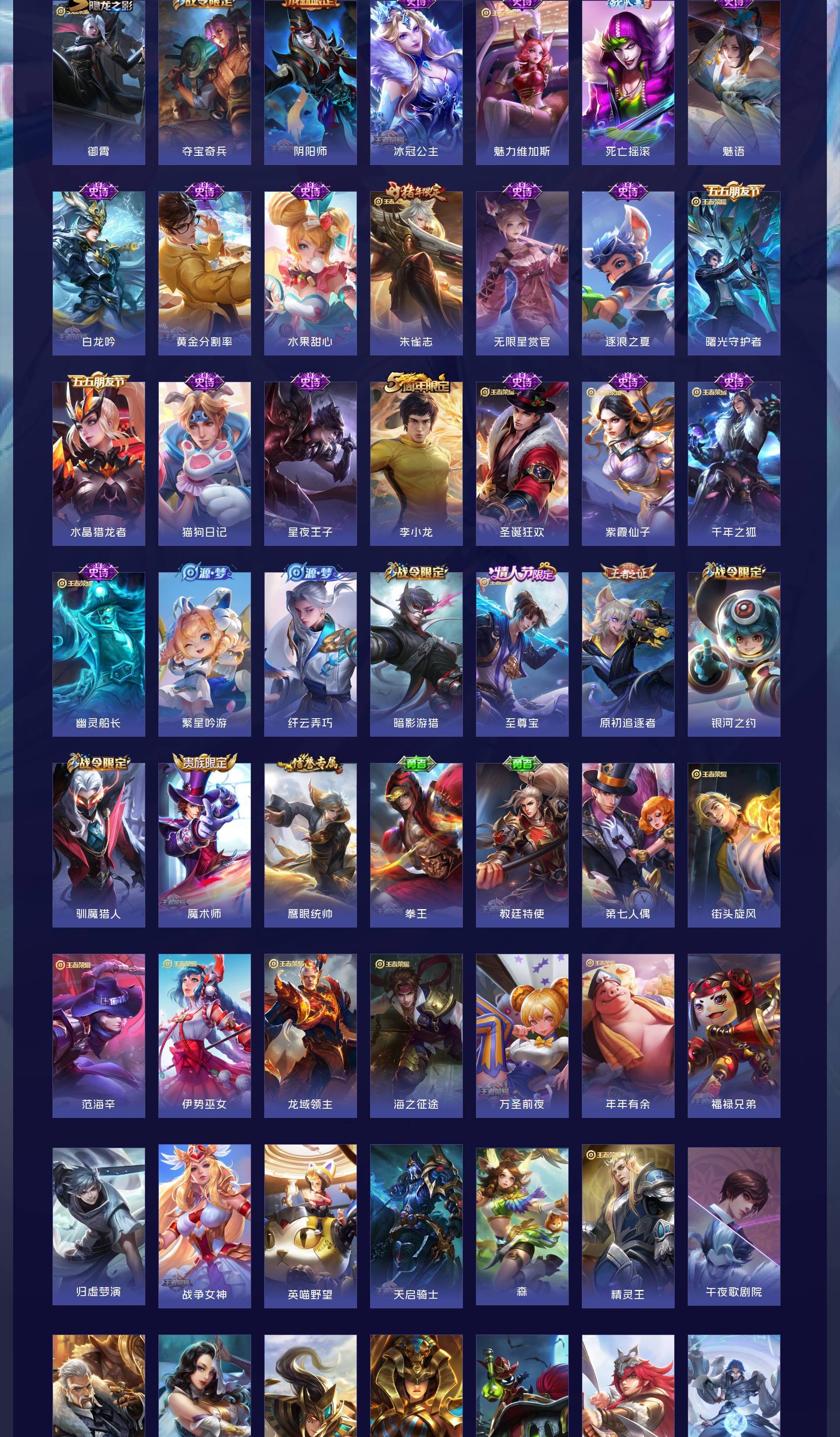 皮肤219 英雄128 至尊星耀 荣耀典藏1 传说6