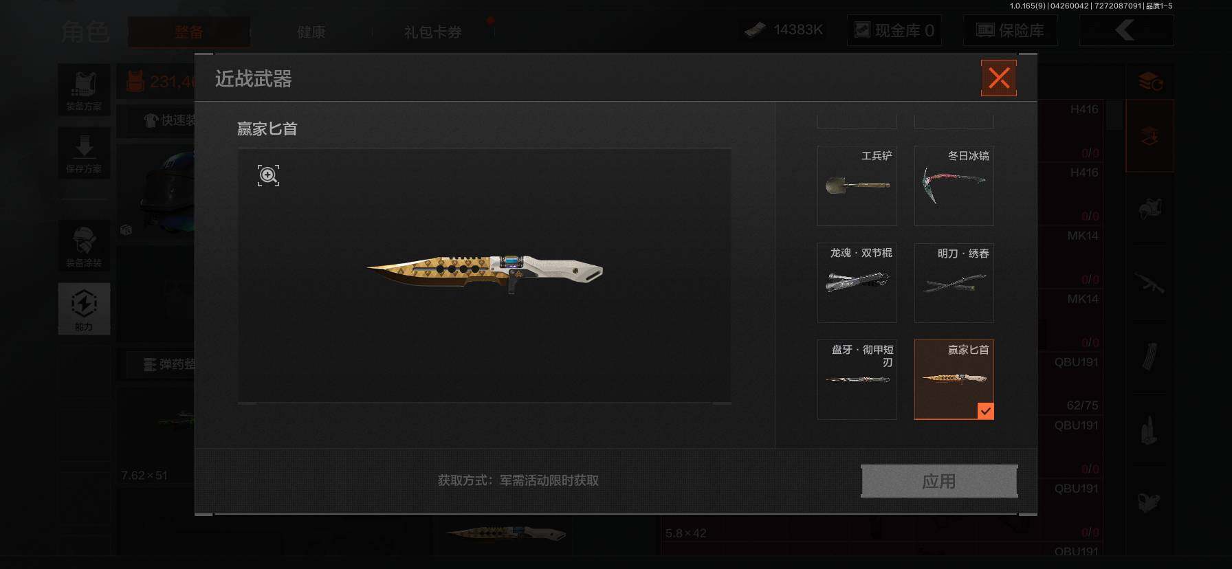 等级:30/段位:新锐/仓库价值(百万):54.5/工兵铲/冬日